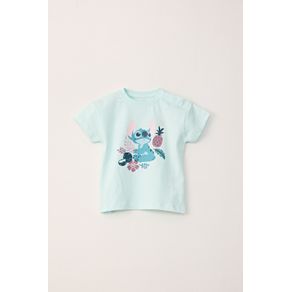 REMERA MANGA CORTA ESTAMPA STITCH TROPICAL CELESTE