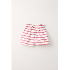 SHORT ESTAMPA RAYAS CON BORDADO FLOR CRUDO