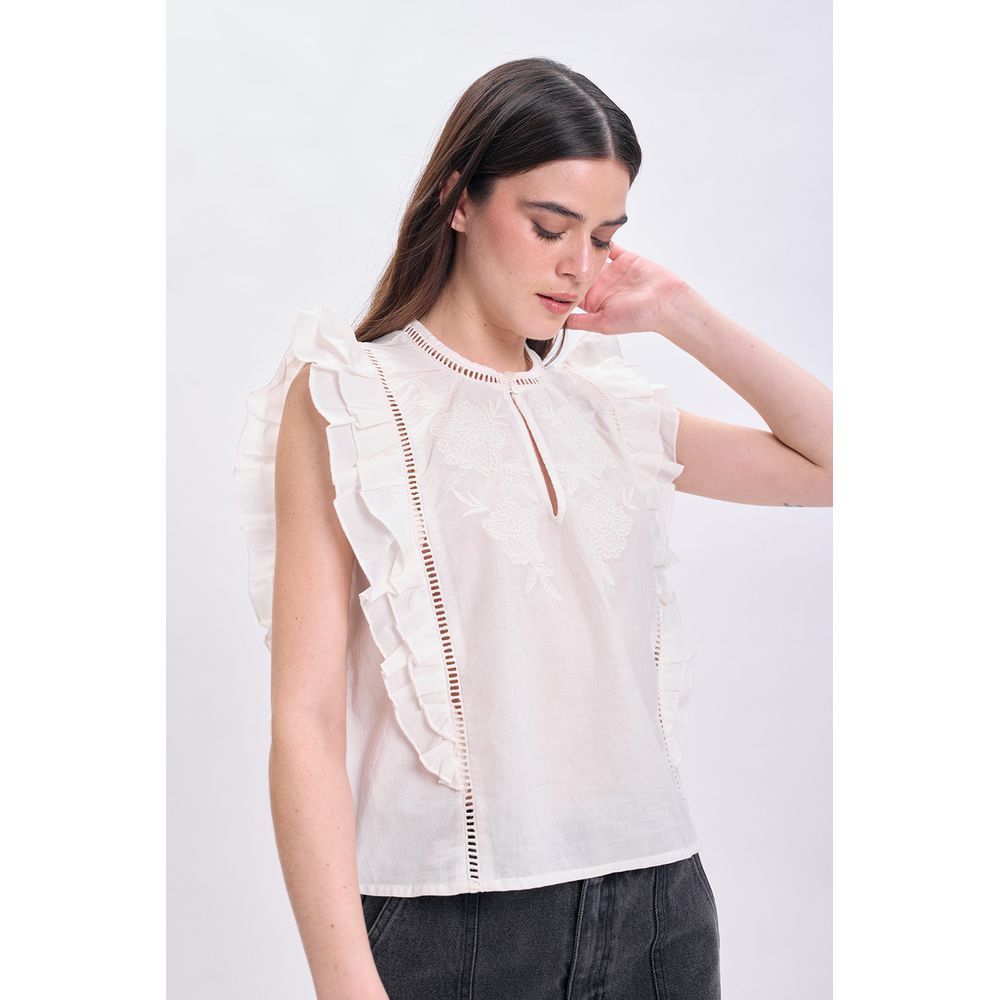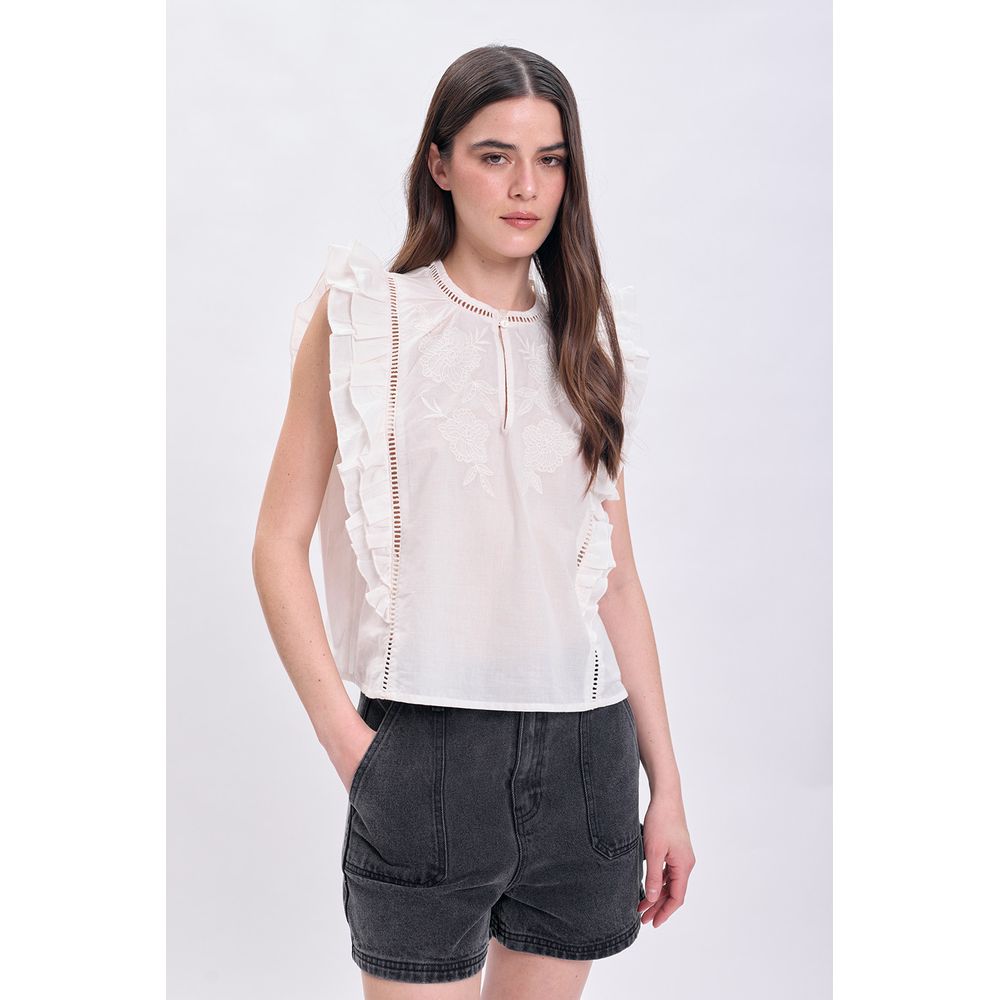 TOP SIN MANGAS LINO BOTONES LATERALES CRUDO