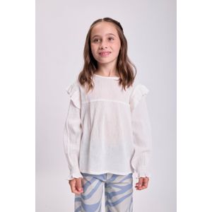 CAMISA MANGA LARGA FRUNCES CON VOLADO EN EL CUELLO BLANCO