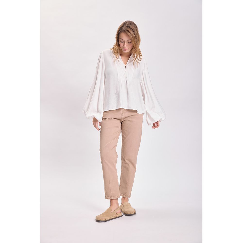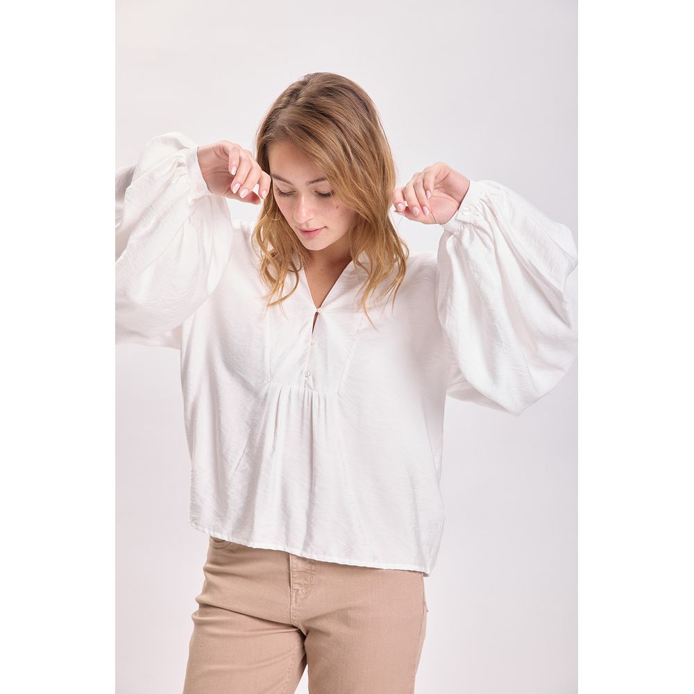 CAMISA DE JEAN MANGA GLOBO CON RECORTES AZUL