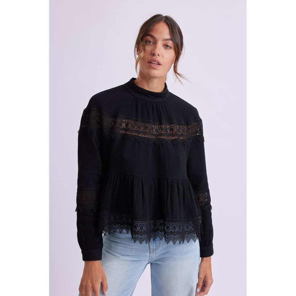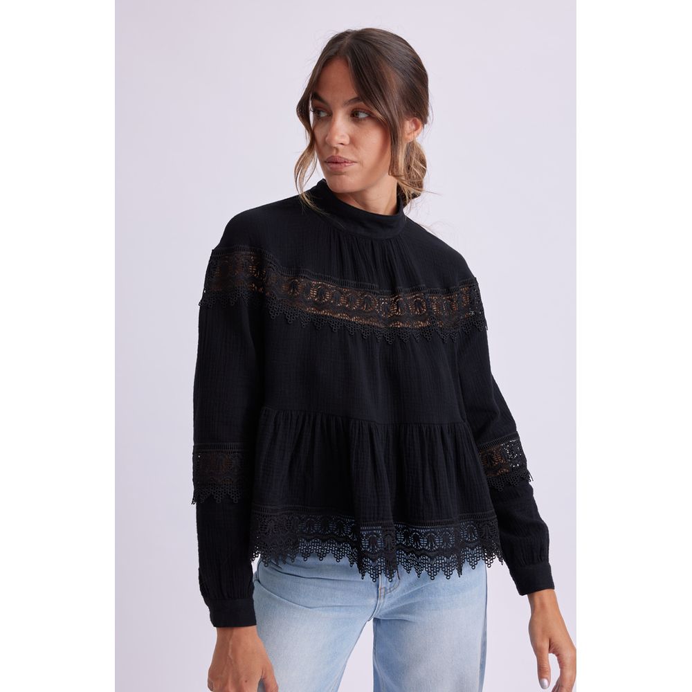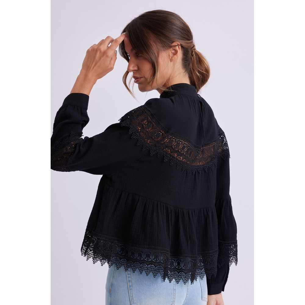 CAMISA MANGA LARGA BRODERIE NEGRO