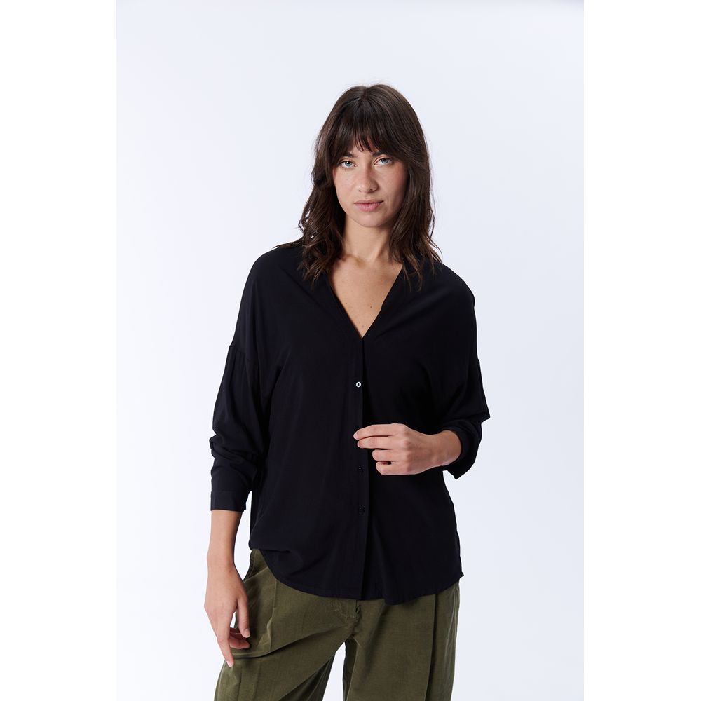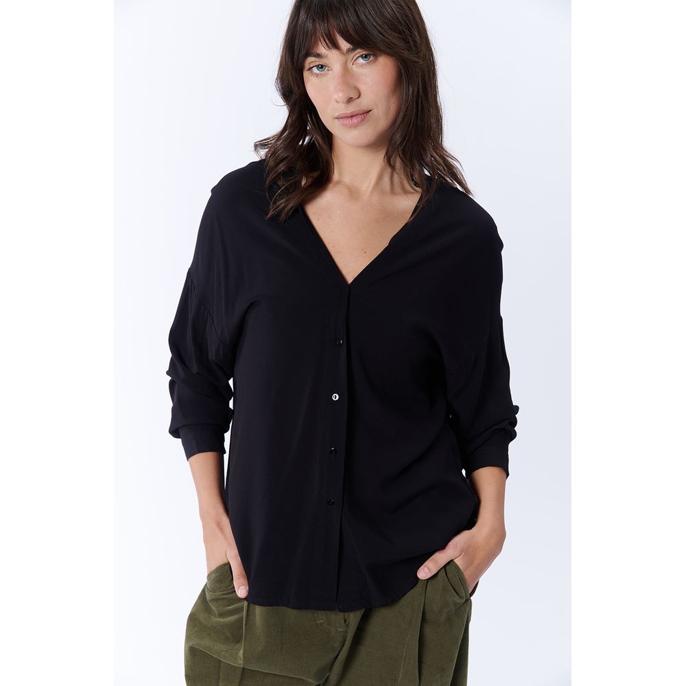 CAMISA MANGA LARGA FRUNCE NEGRA