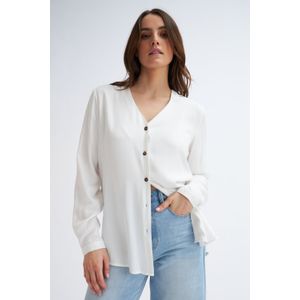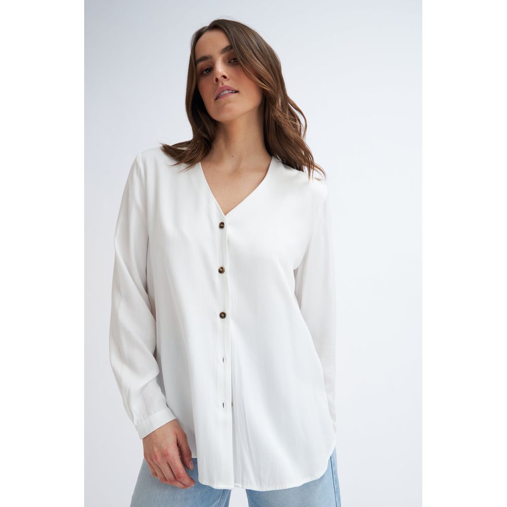 BLUSA MANGA LARGA ESCOTE EN V BLANCA