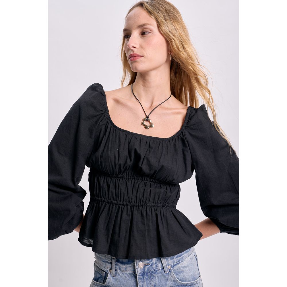 CAMISA MANGA LARGA BRODERIE NEGRO