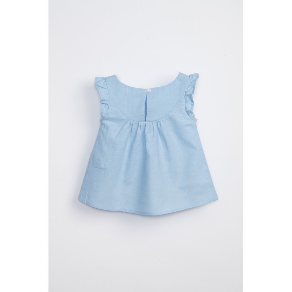 BLUSA SIN MANGA VOLADOS LISO CELESTE