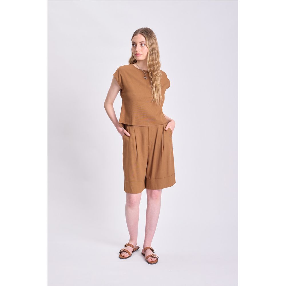 BLUSA SIN MANGAS CON LINO TOSTADO