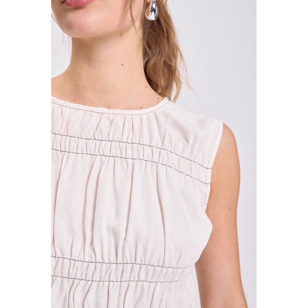CAMISA MANGA CORTA OVERSIZE LINO ESTAMPADA BLANCO