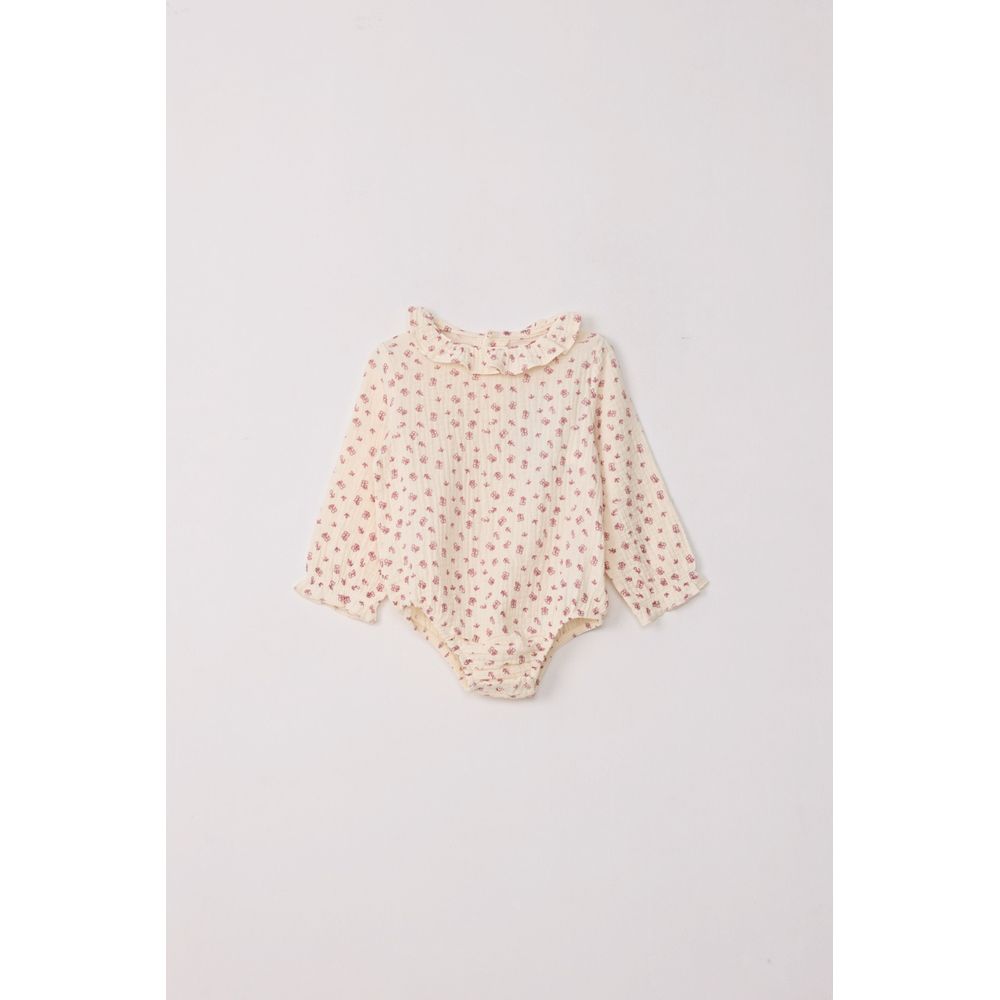 BODY CUELLO VOLADO ESTAMPA FLORES CRUDO