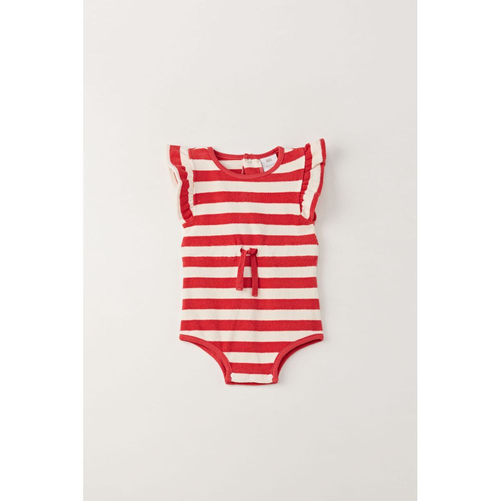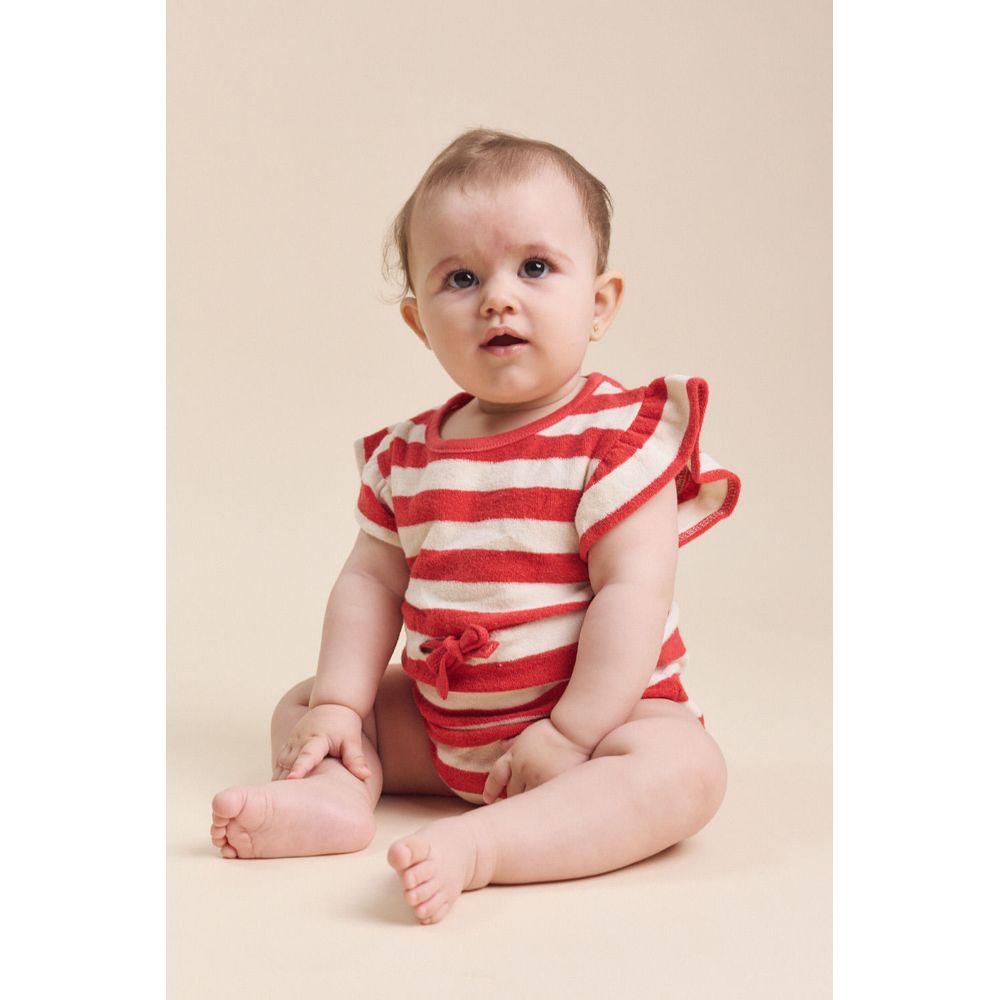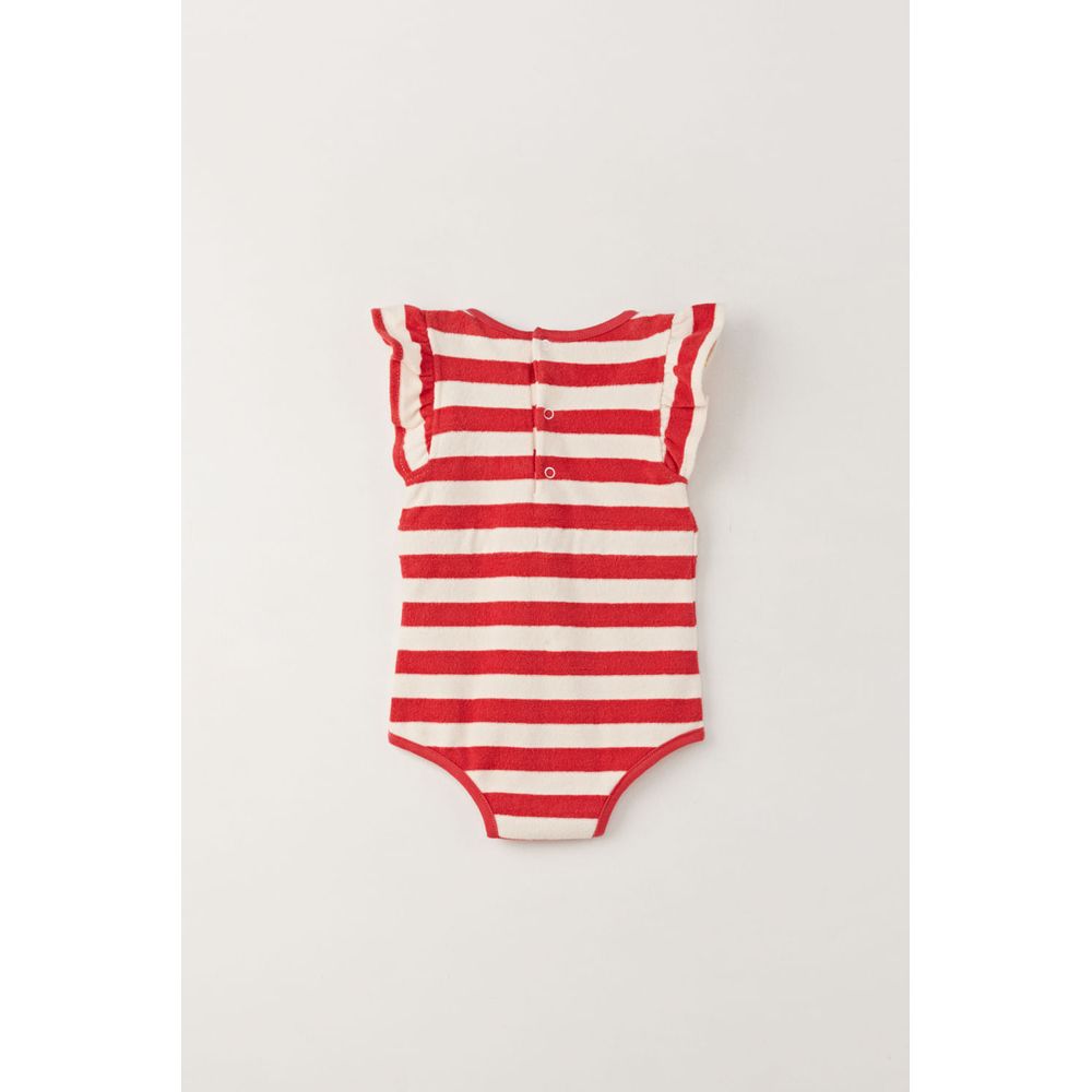 BODY MANGA CORTA CON CUELLO BOBO ESTAMPA RAYAS CRUDO