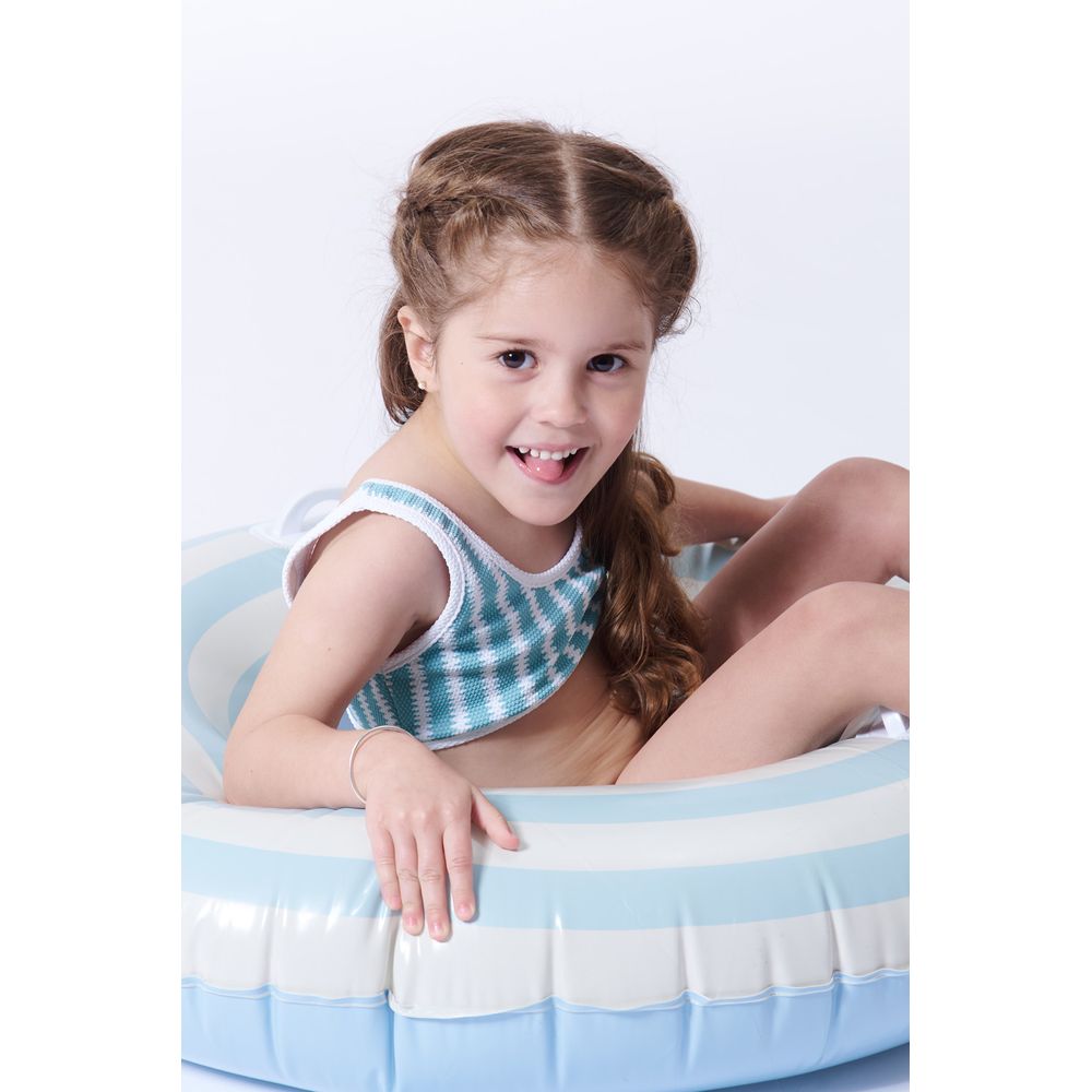 TOP BIKINI CON VOLADOS RAYAS CELESTE