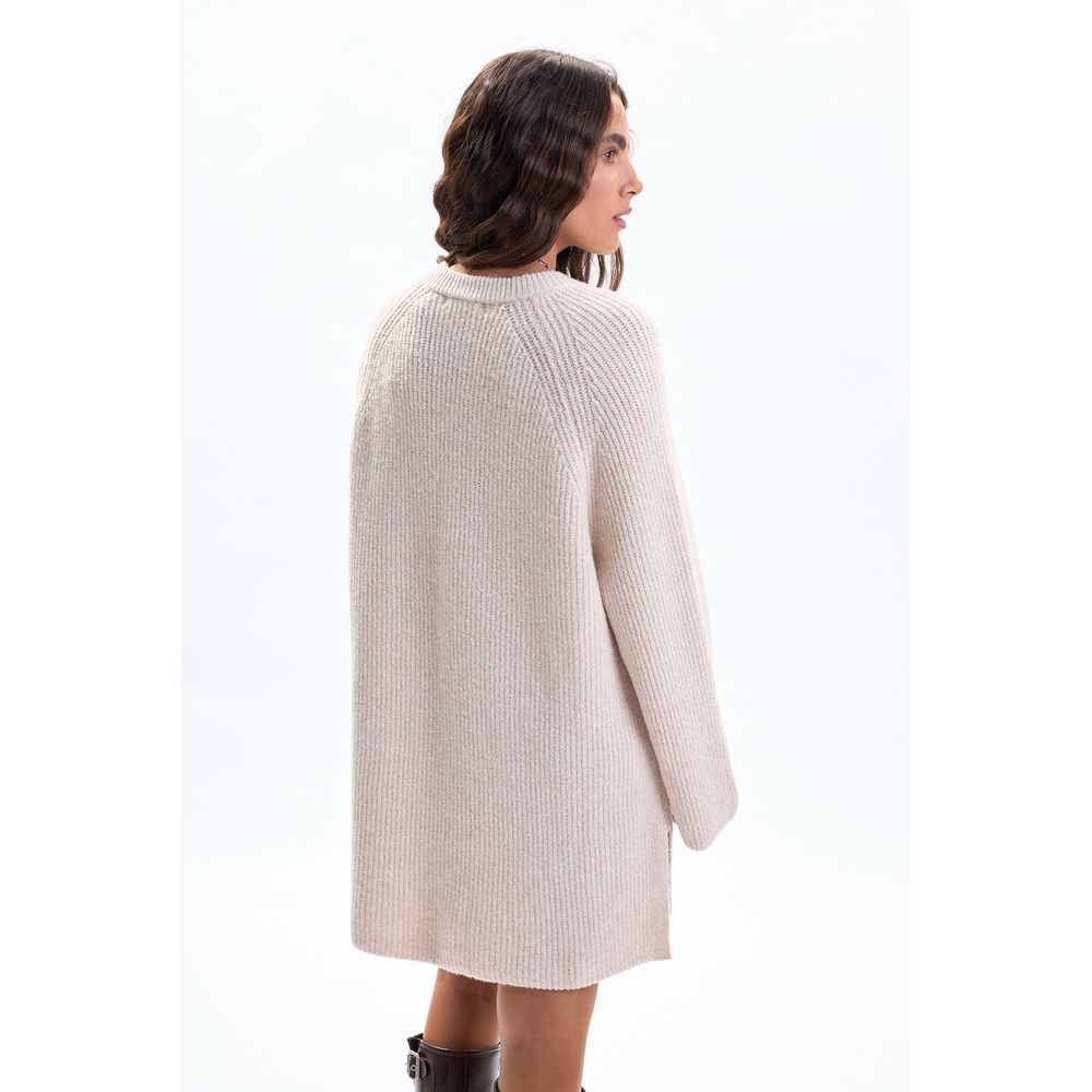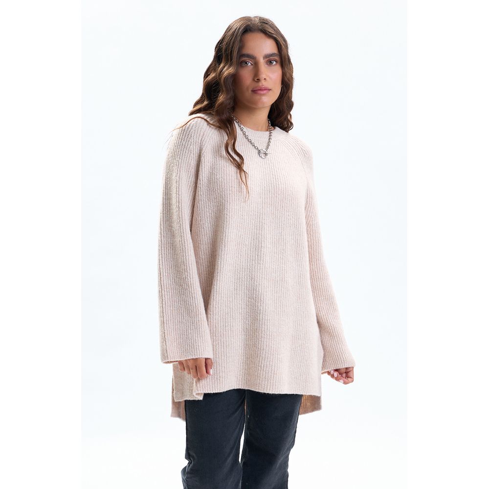 BUZO DE PUNTO FANTASIA CON ABERTURAS LATERALES CRUDO