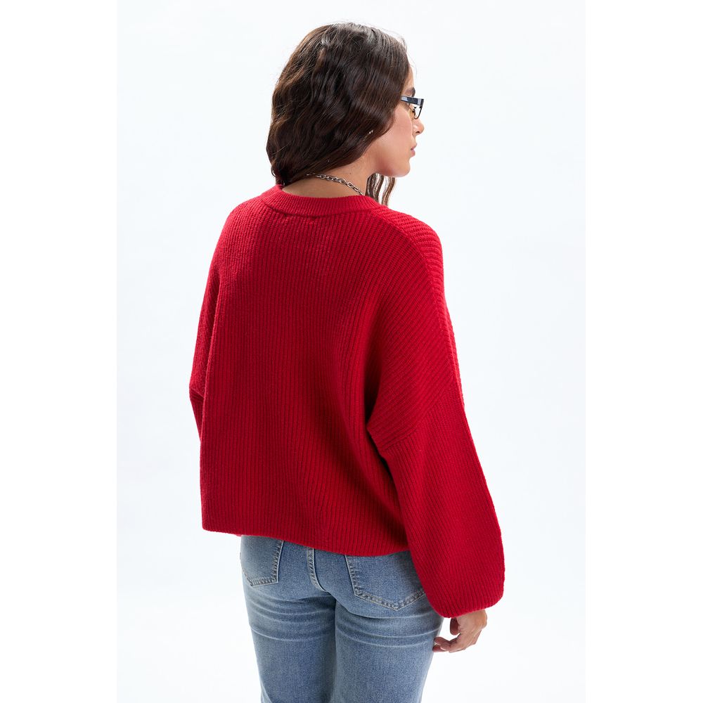 CARDIGAN TEJIDO RIB CON AJUSTE ROJO