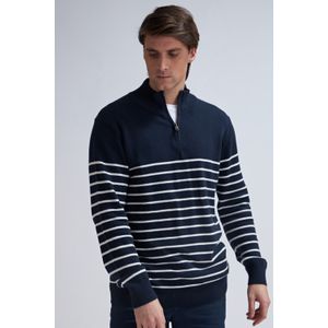 BUZO DE PUNTO MEDIO CIERRE AZUL MARINO CON RAYAS