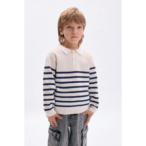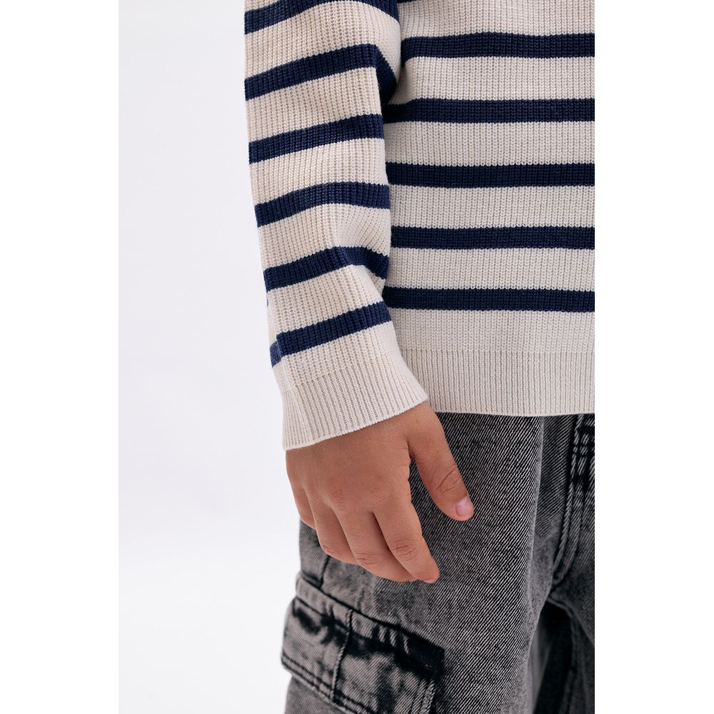 BUZO TEJIDO RAYAS AZUL Y GRIS
