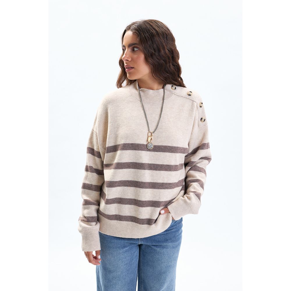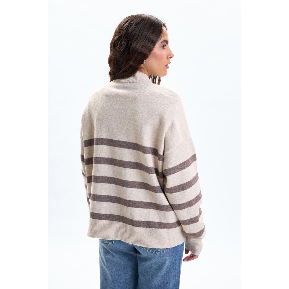BUZO DE PUNTO FANTASIA CON ABERTURAS LATERALES CRUDO