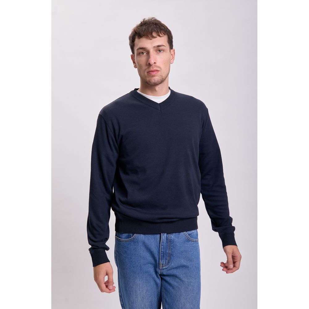 BUZO PUNTO BÁSICO CUELLO V AZUL MARINO