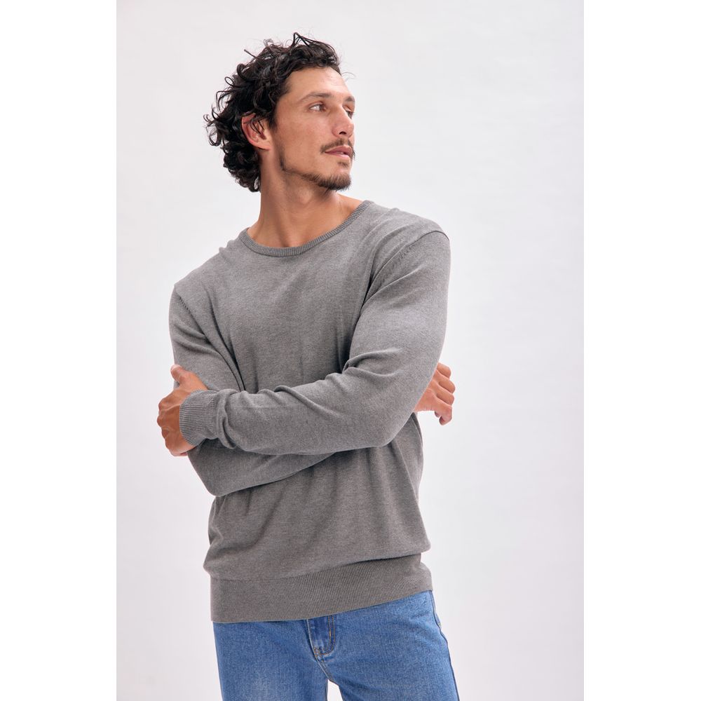BUZO PUNTO CUELLO A LA BASE GRIS MELANGE
