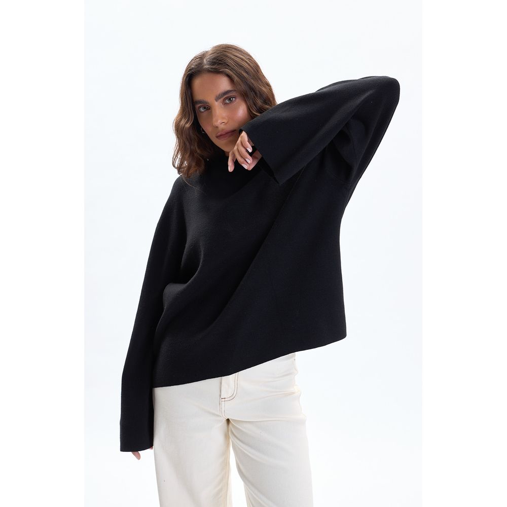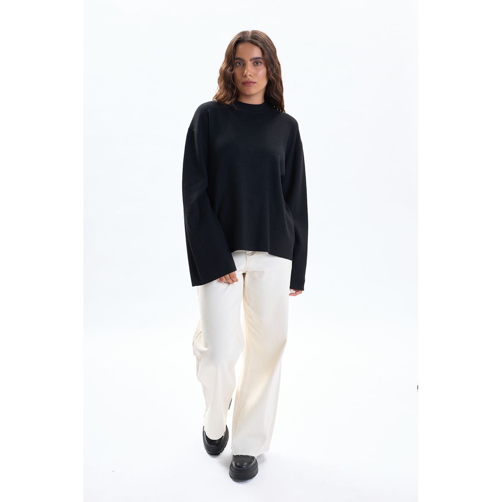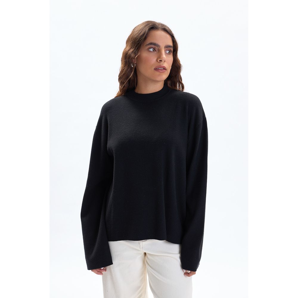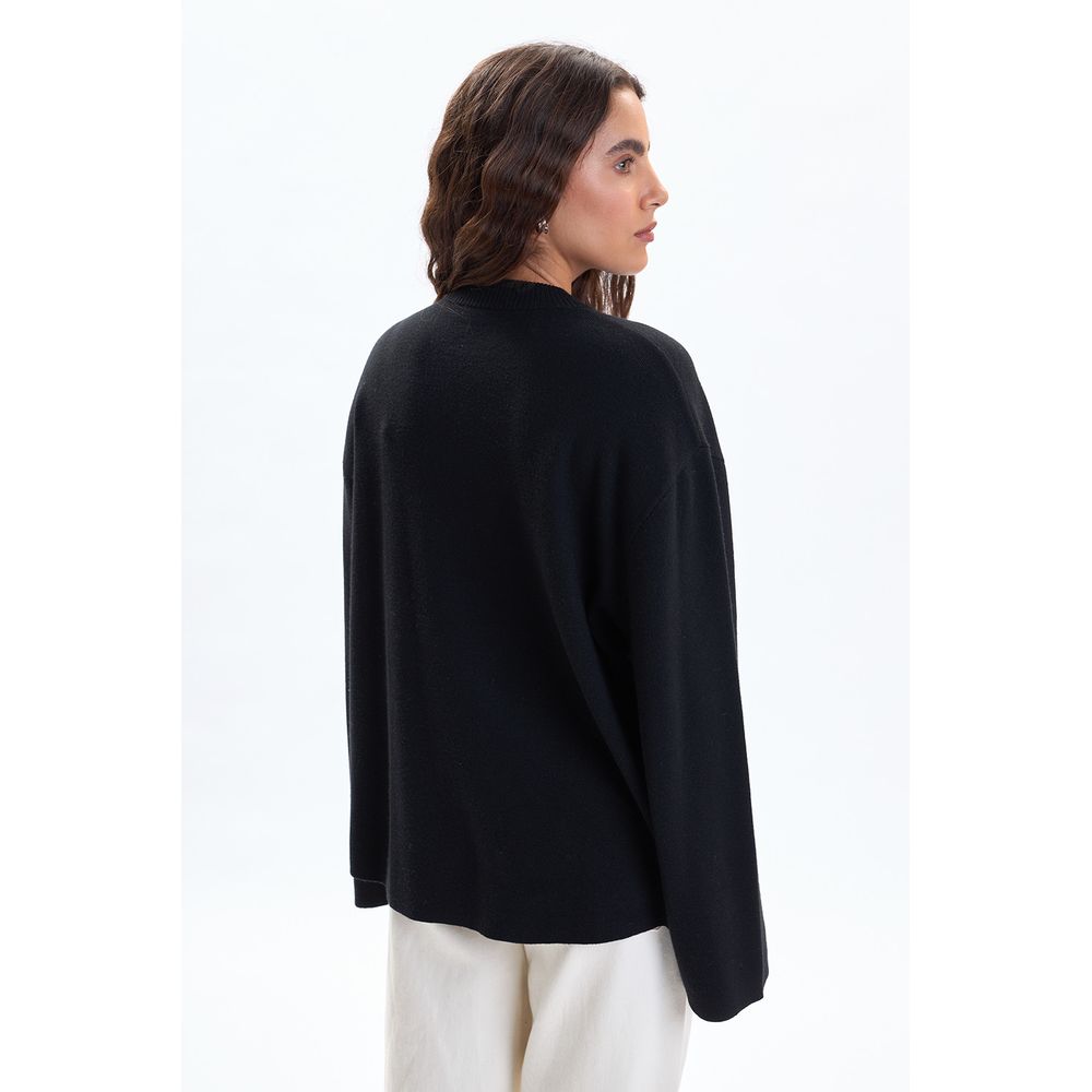BUZO PUNTO CUELLO A LA BASE MANGA ANCHA NEGRO