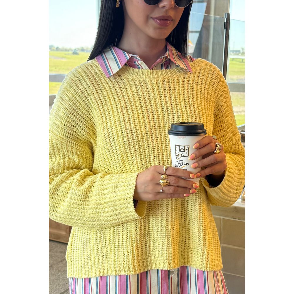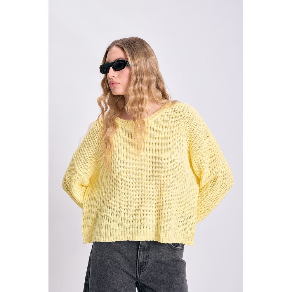 BUZO DE PUNTO FANTASIA CON ABERTURAS LATERALES CRUDO