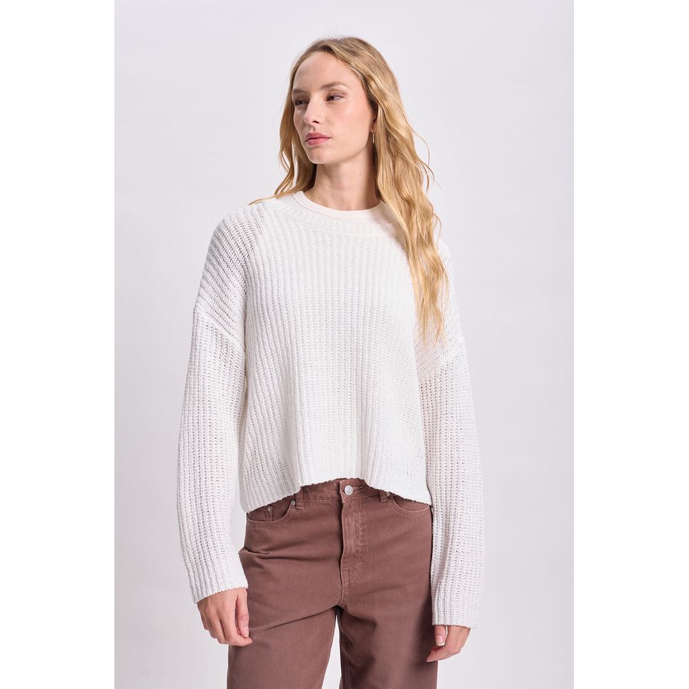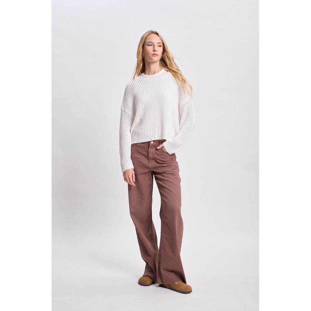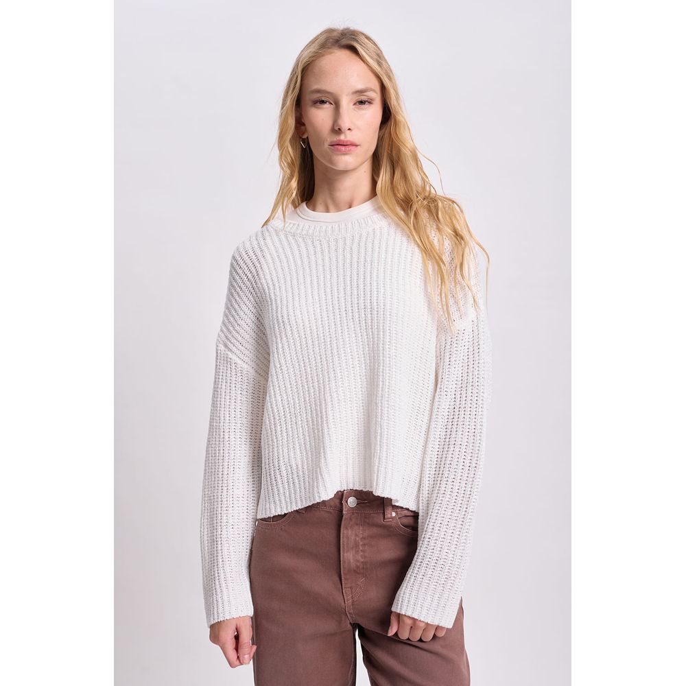 BUZO DE PUNTO FANTASIA CON ABERTURAS LATERALES CRUDO