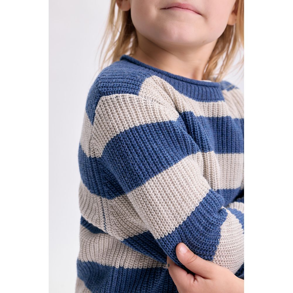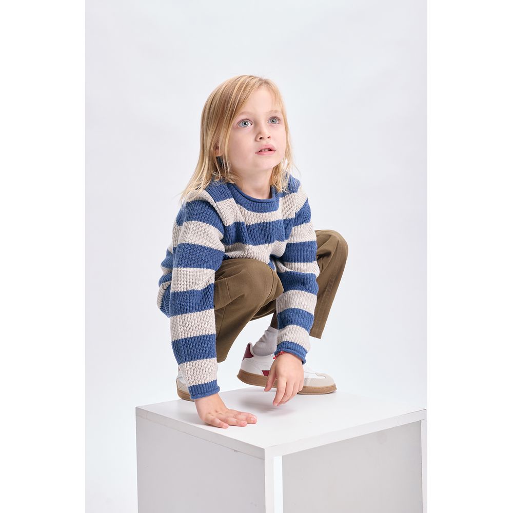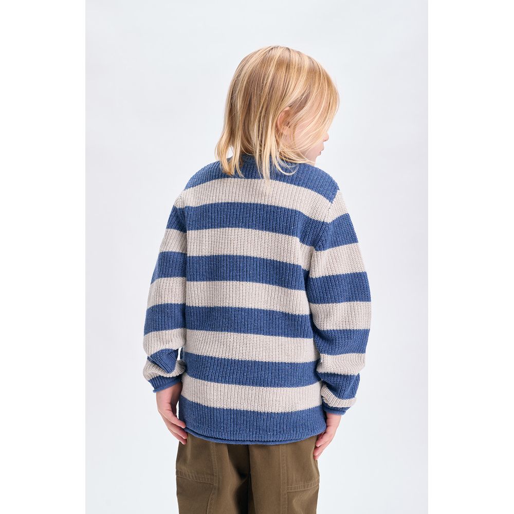 BUZO TEJIDO RAYAS AZUL Y GRIS