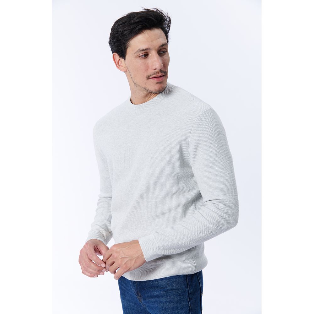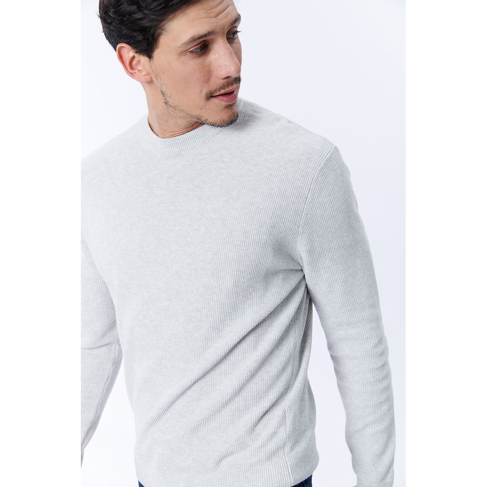 BUZO PUNTO TEXTURA CUADROS GRIS MELANGE CLARO