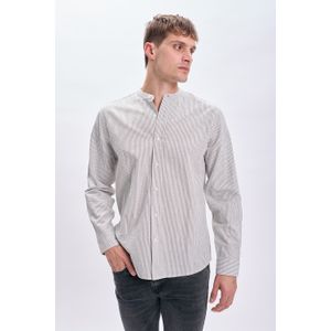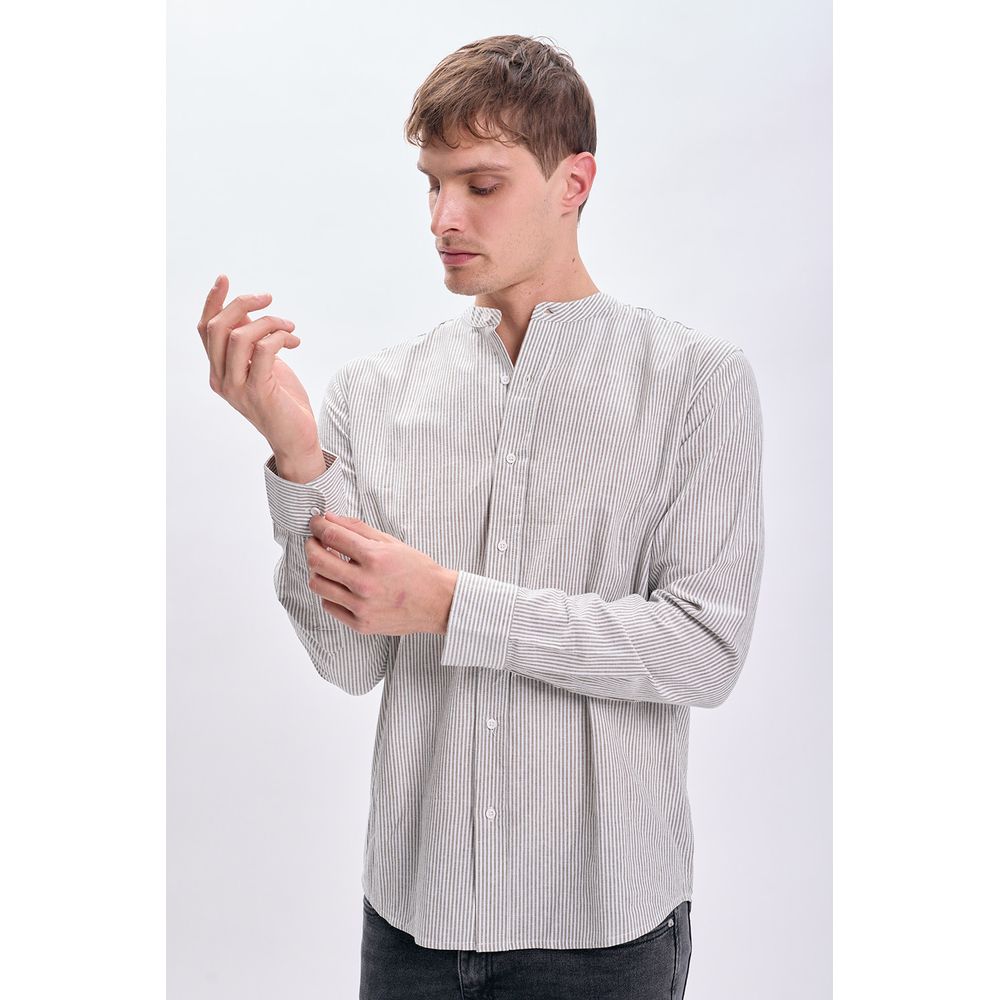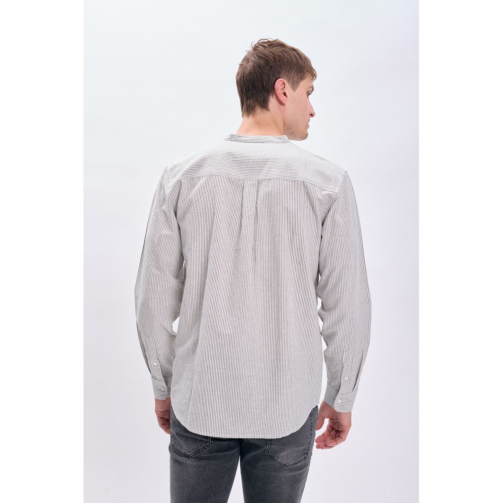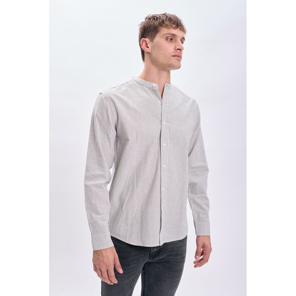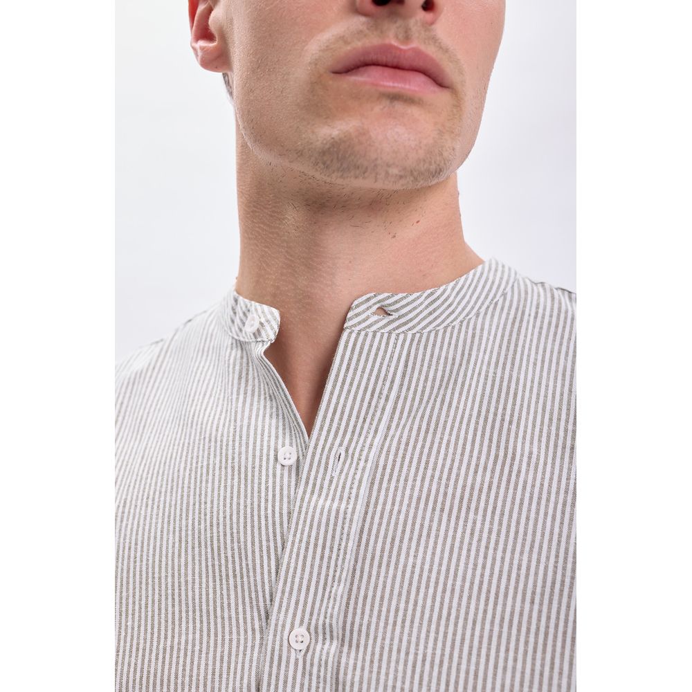 CAMISA CON LINO CUELLO MAO RAYAS VERDE