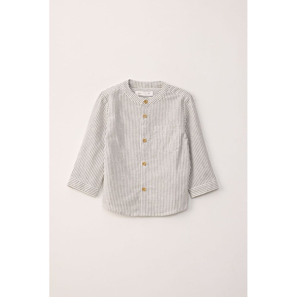 CAMISA CON LINO RAYADA VERDE:9/12m
