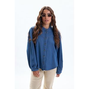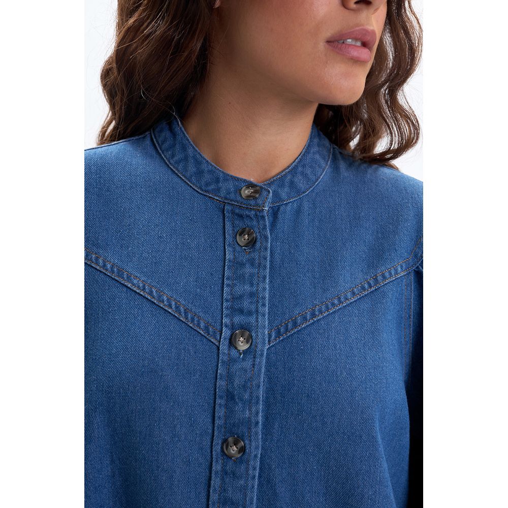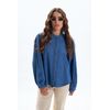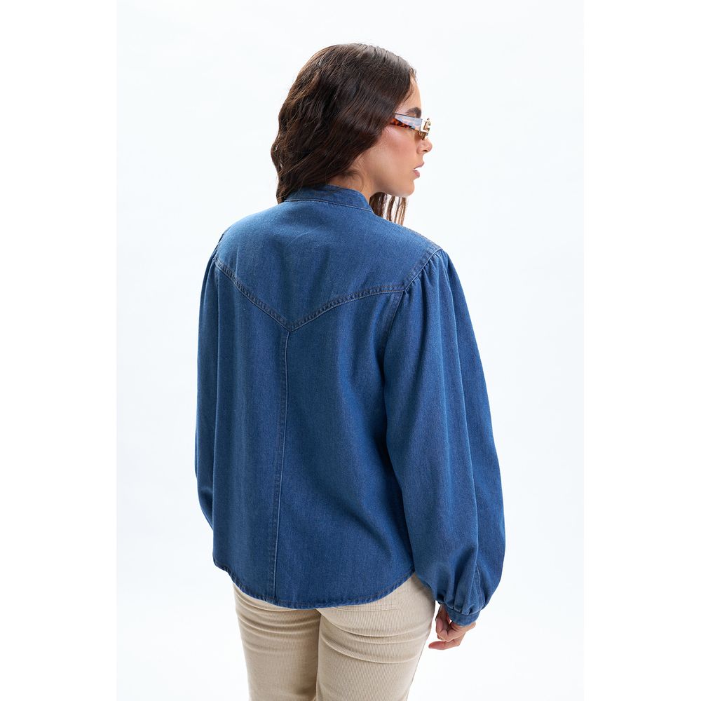CAMISA DE JEAN MANGA GLOBO CON RECORTES AZUL