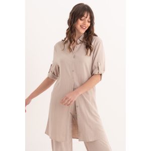CAMISA MANGA LARGA LINO BEIGE