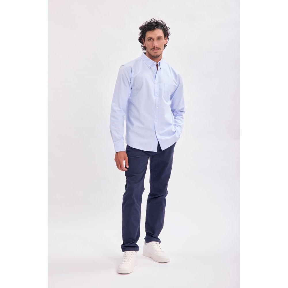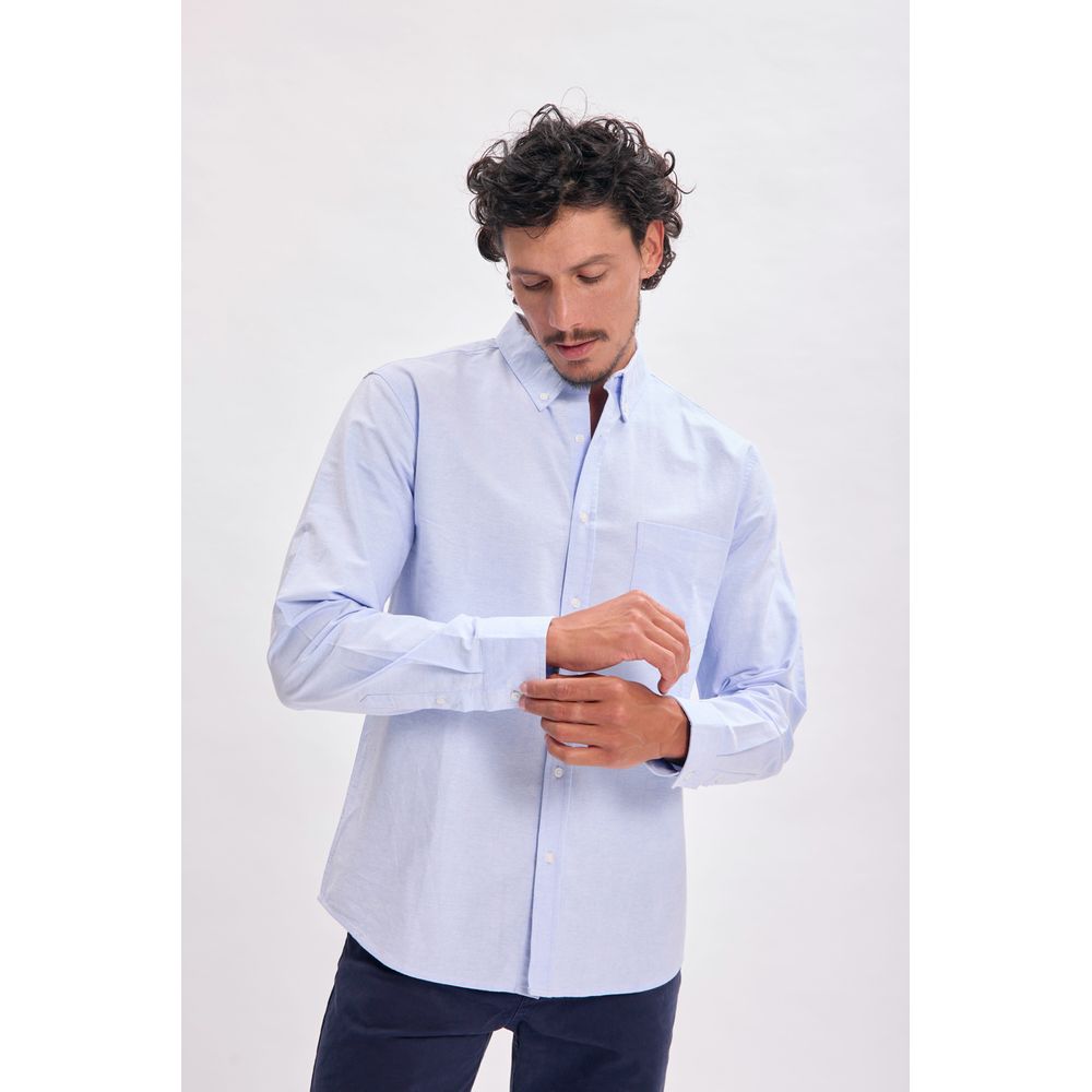 CAMISA MANGA CORTA CELESTE Y BLANCO