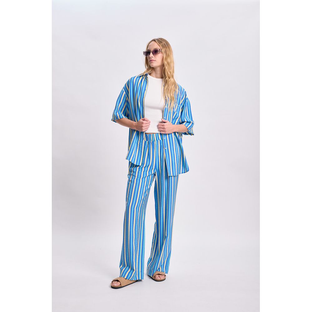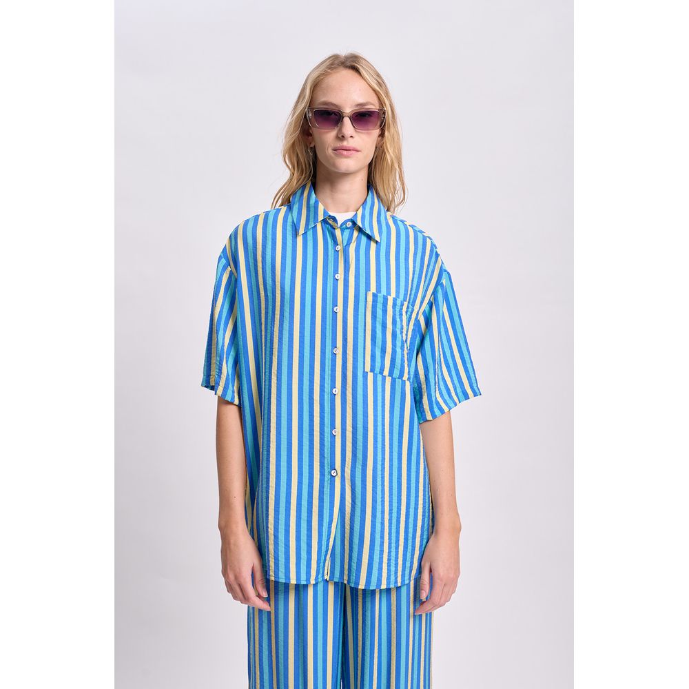 CAMISA MANGA CORTA RAYADA VISCOSA AZUL