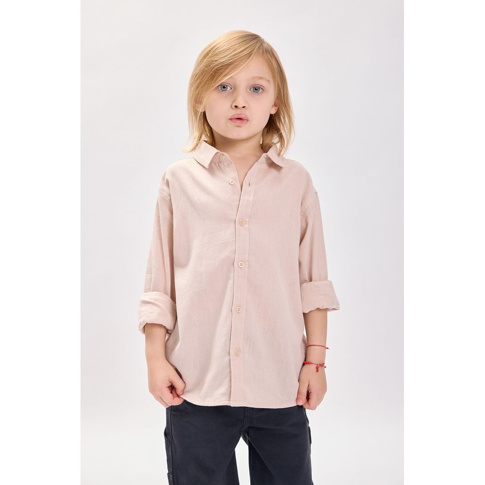 CAMISA MANGA LARGA CUADROS VERDE Y BEIGE