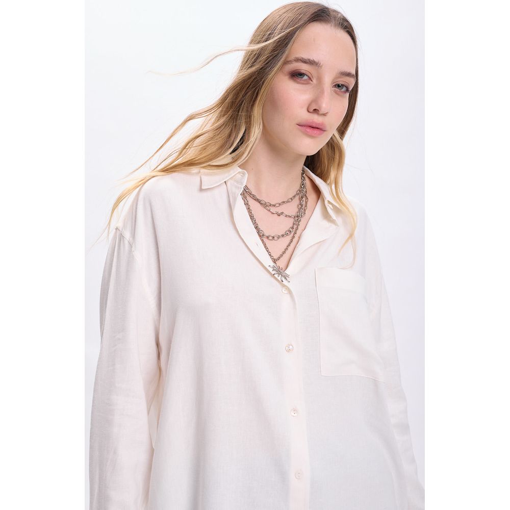CAMISA MANGA CORTA OVERSIZE LINO ESTAMPADA CRUDO