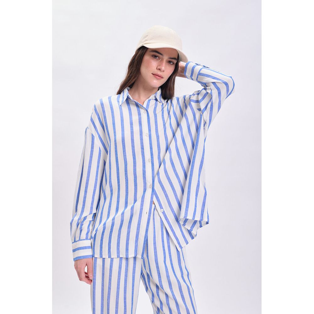 CAMISA MANGA CORTA OVERSIZE LINO ESTAMPADA BLANCO