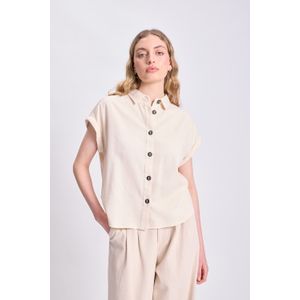 CAMISA MANGA CORTA OVERSIZE LINO ESTAMPADA CRUDO