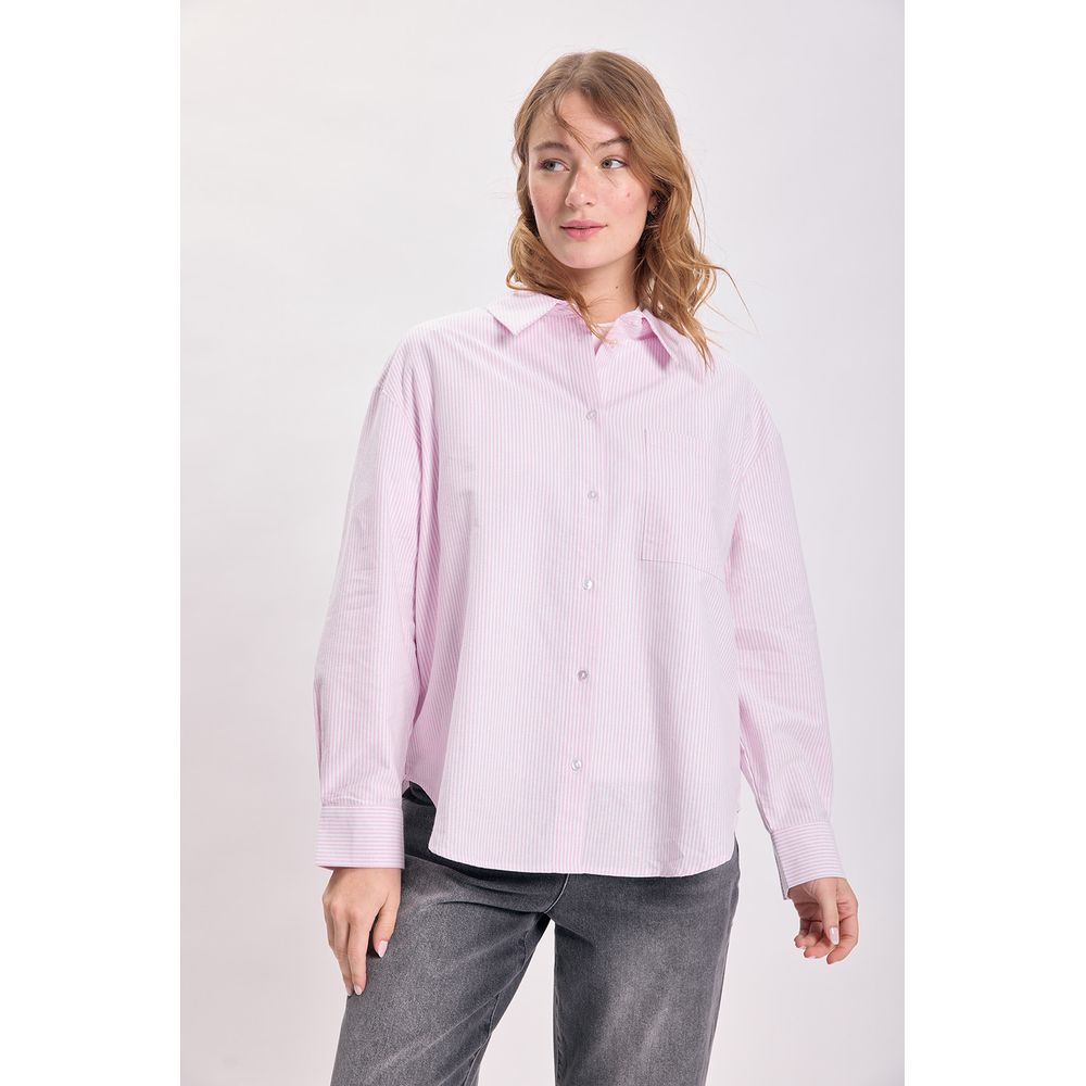 CAMISA OXFORD RAYAS ROSA