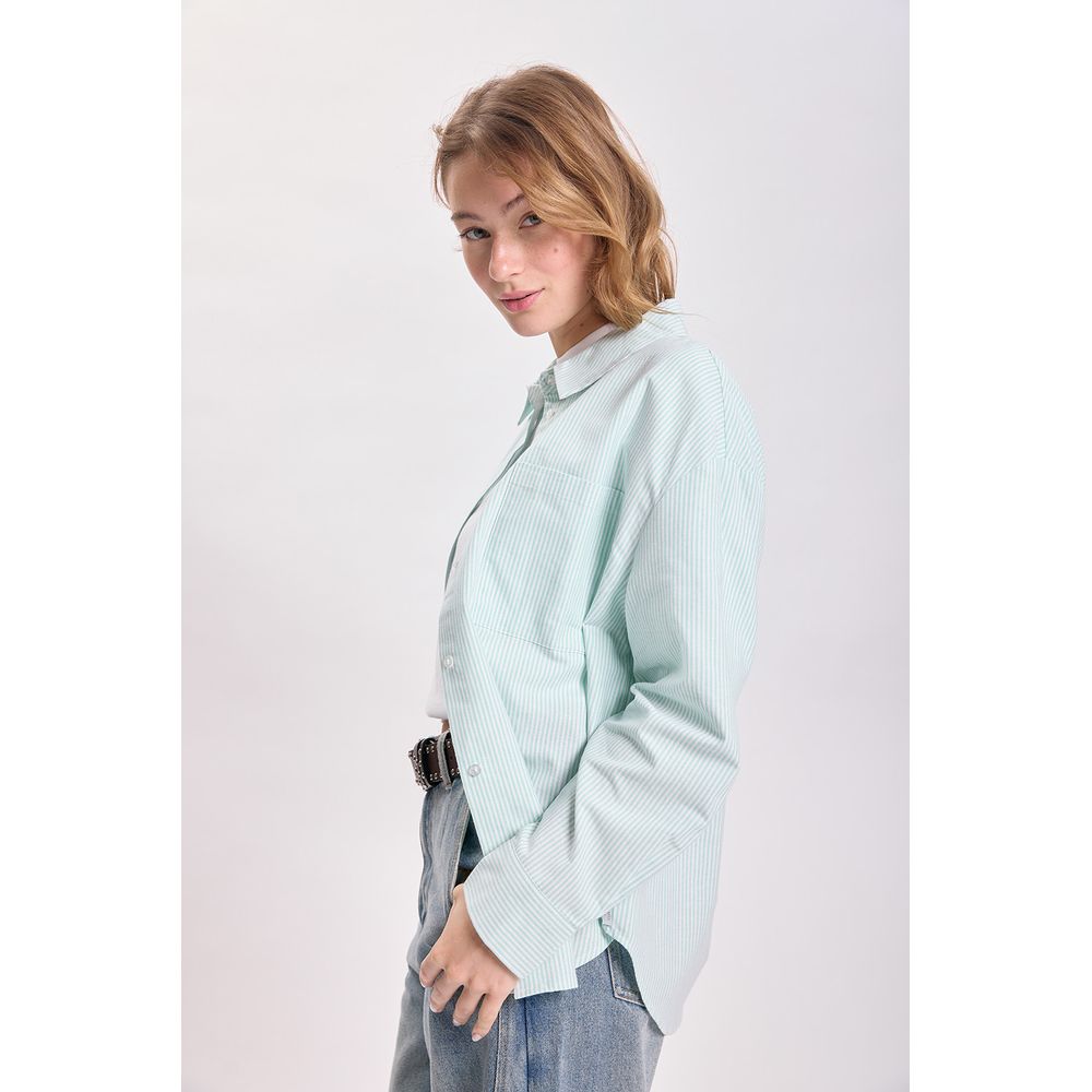 CAMISA MANGA CORTA RAYADA VISCOSA AZUL