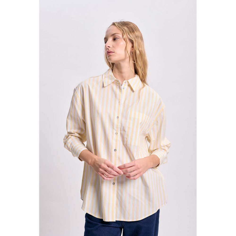 CAMISA MANGA CORTA RAYADA VISCOSA FUCSIA
