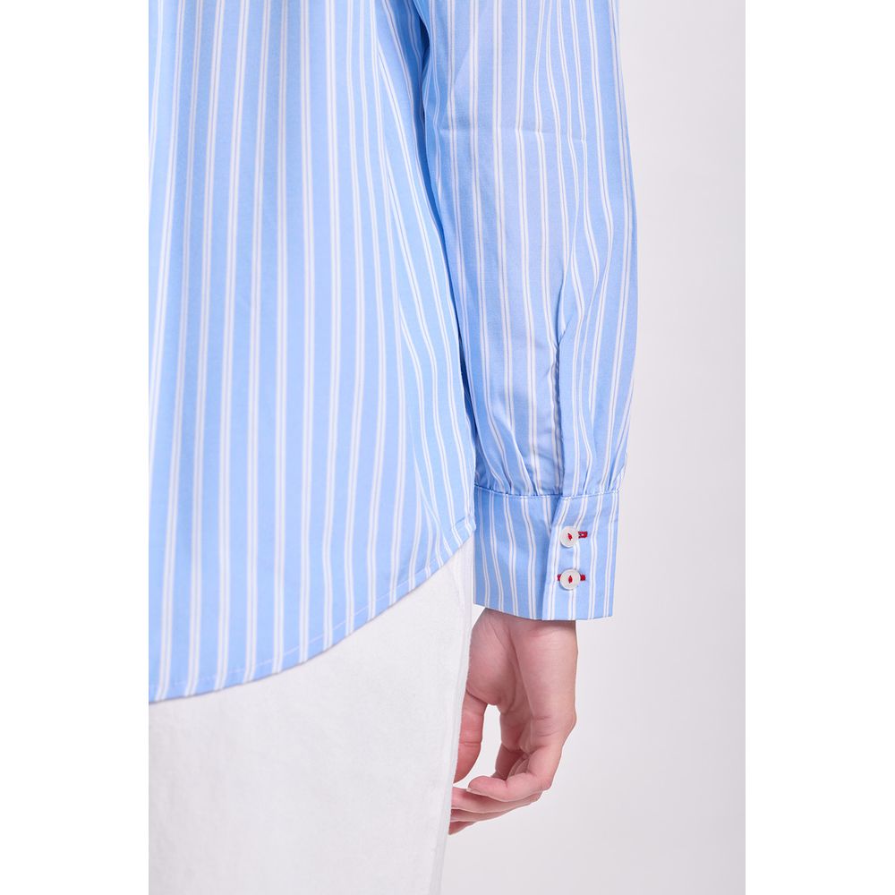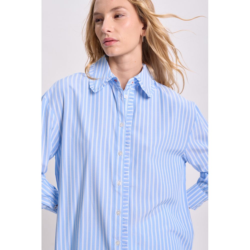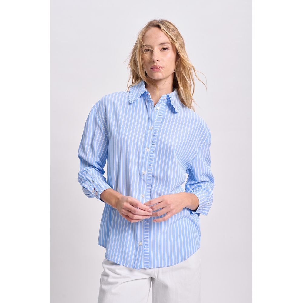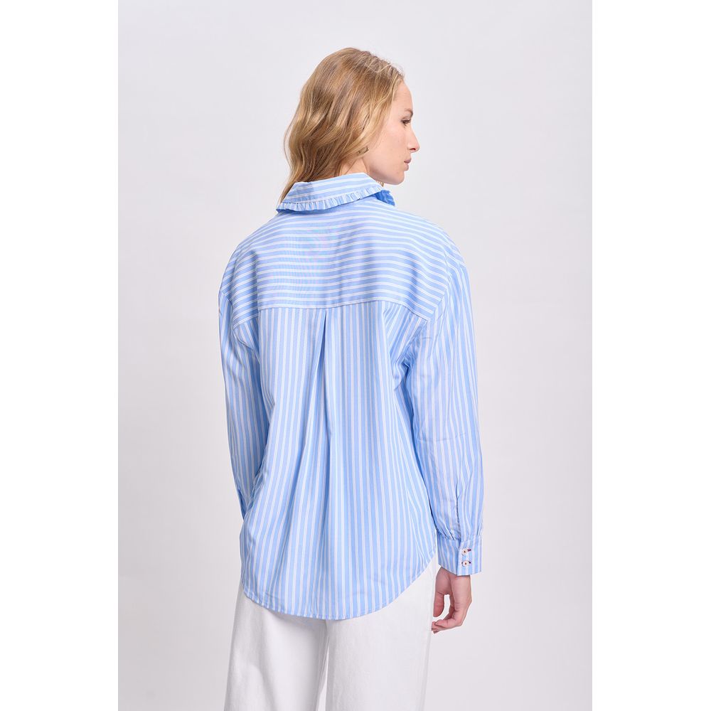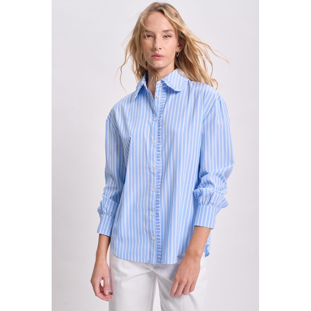 CAMISA DE JEAN MANGA GLOBO CON RECORTES AZUL