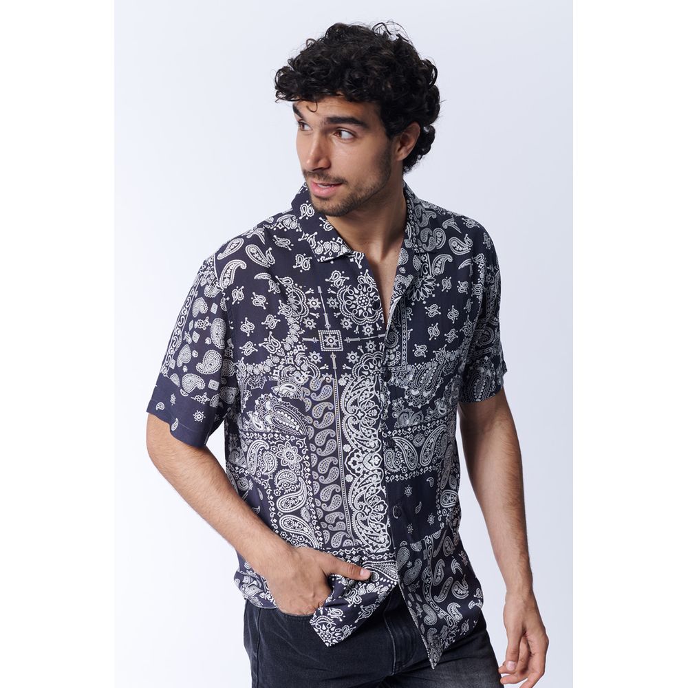 CAMISA VISCOSA ESTAMPA ARABESCOS ARABESCO GRIS OSCURO
