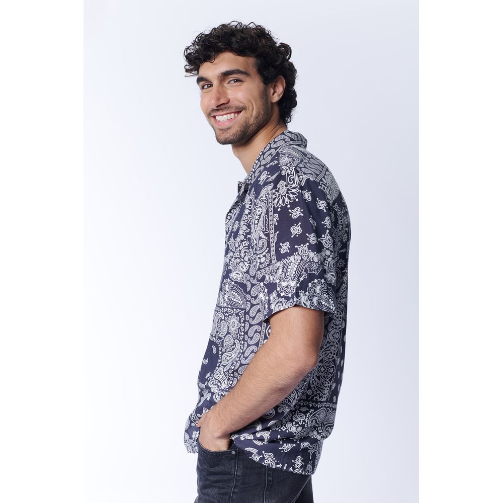CAMISA VISCOSA ESTAMPA ARABESCOS AZUL