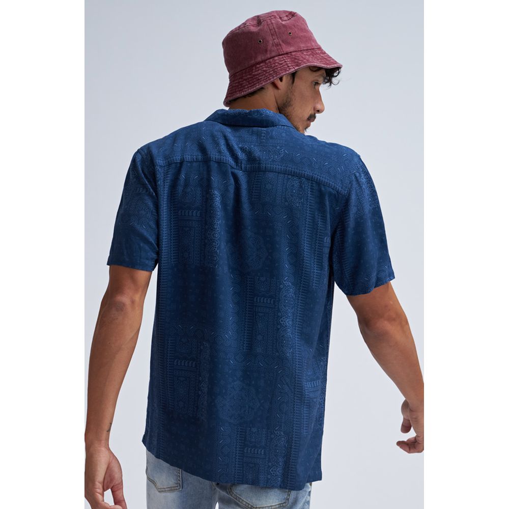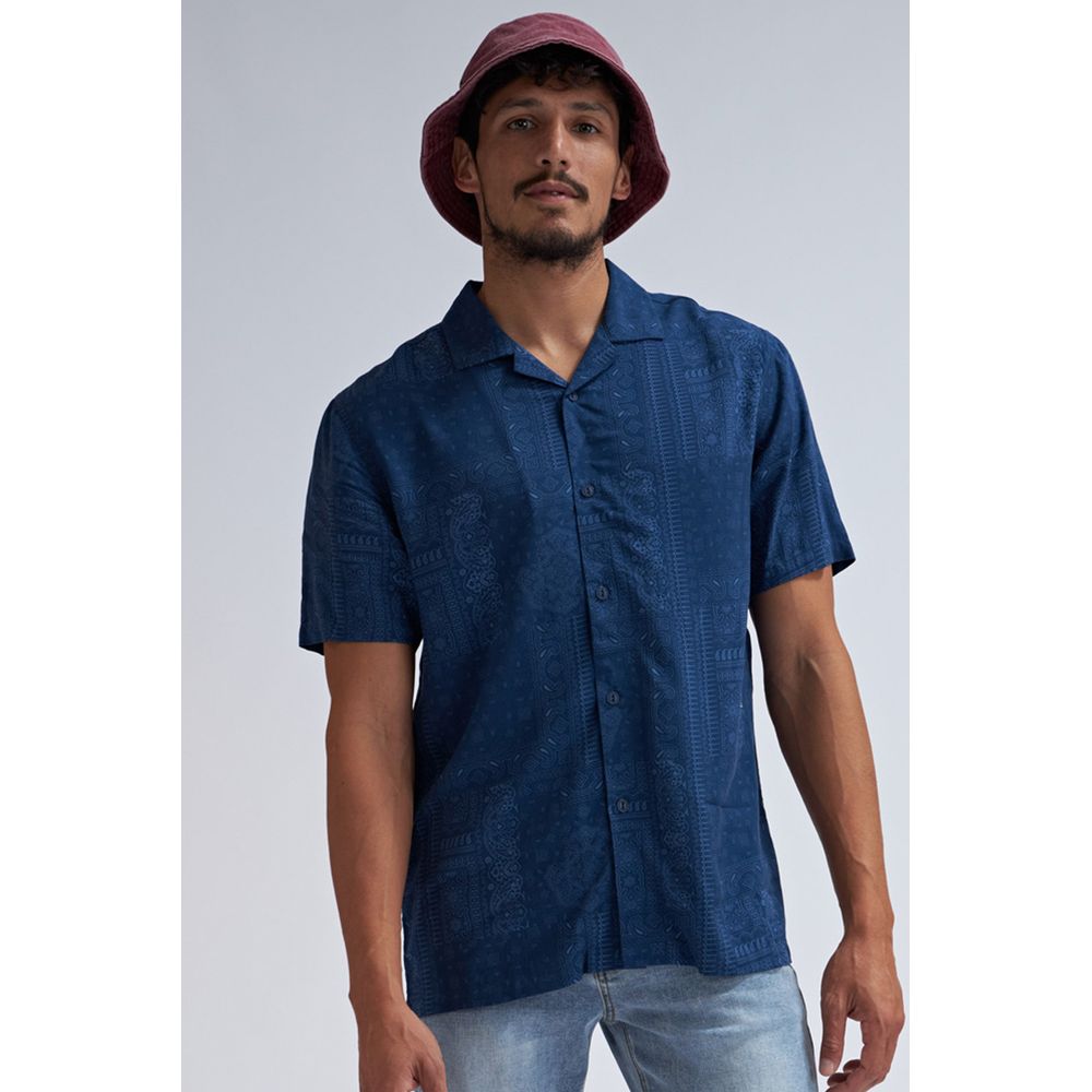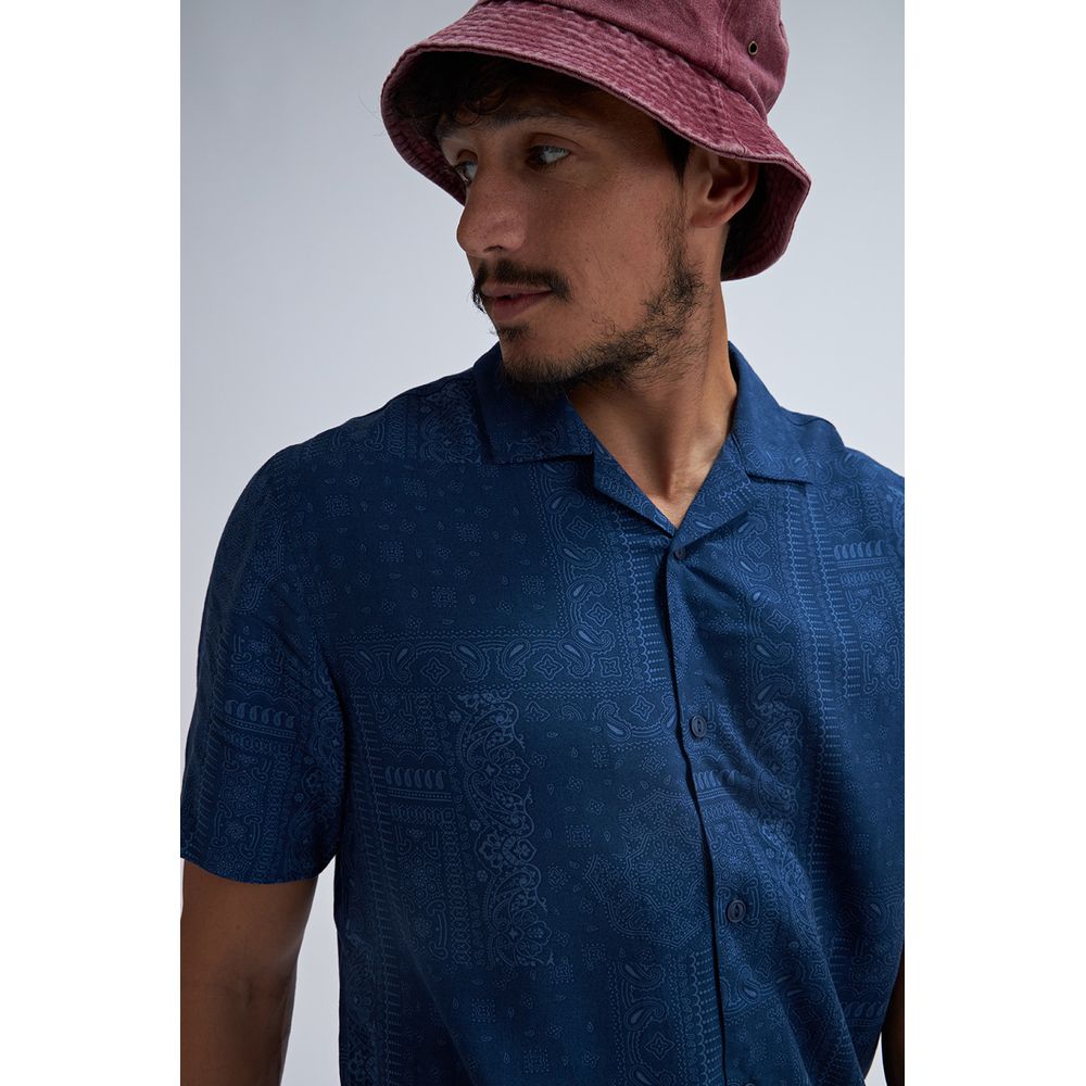CAMISA VISCOSA ESTAMPA ARABESCOS AZUL