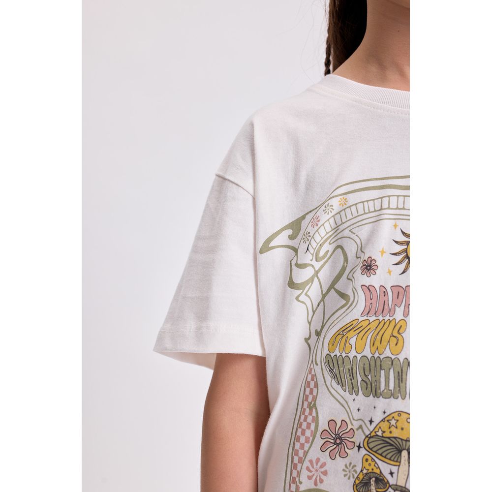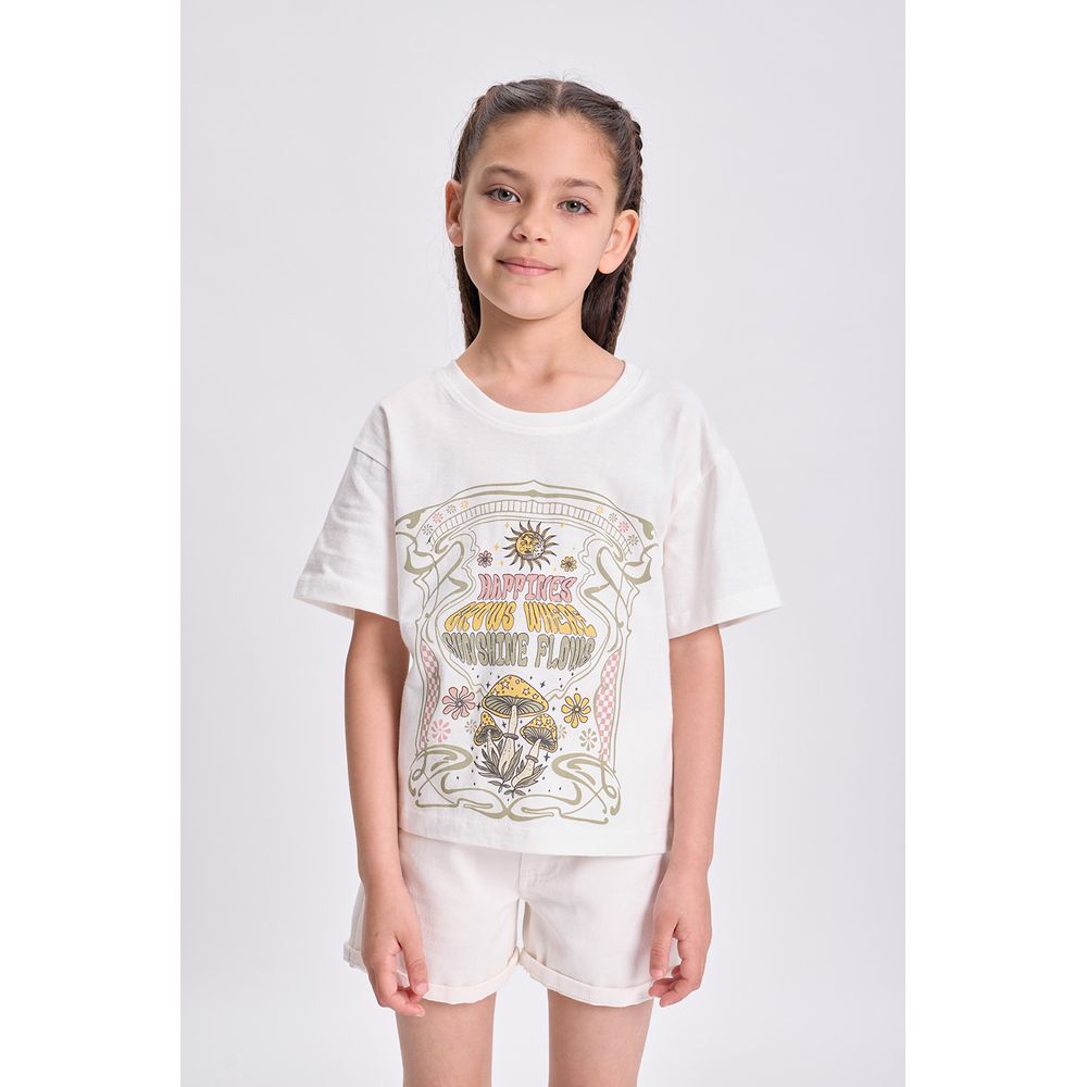 REMERA MANGA CORTA ESTAMPA FLOREADO CRUDO