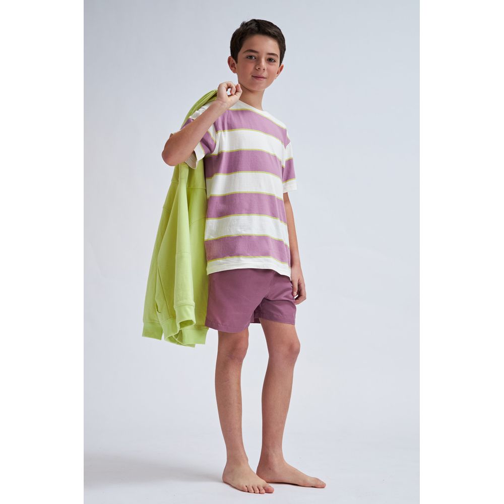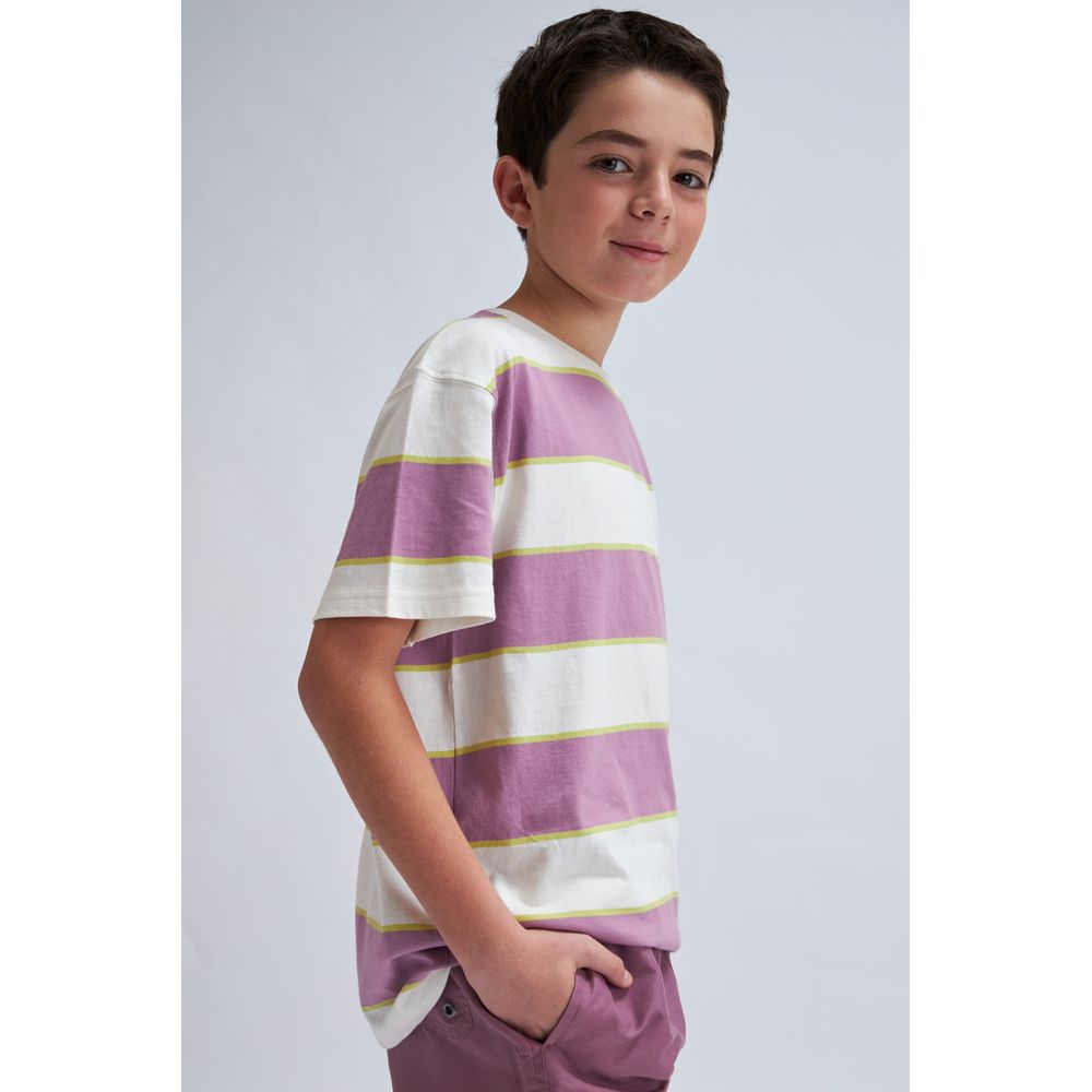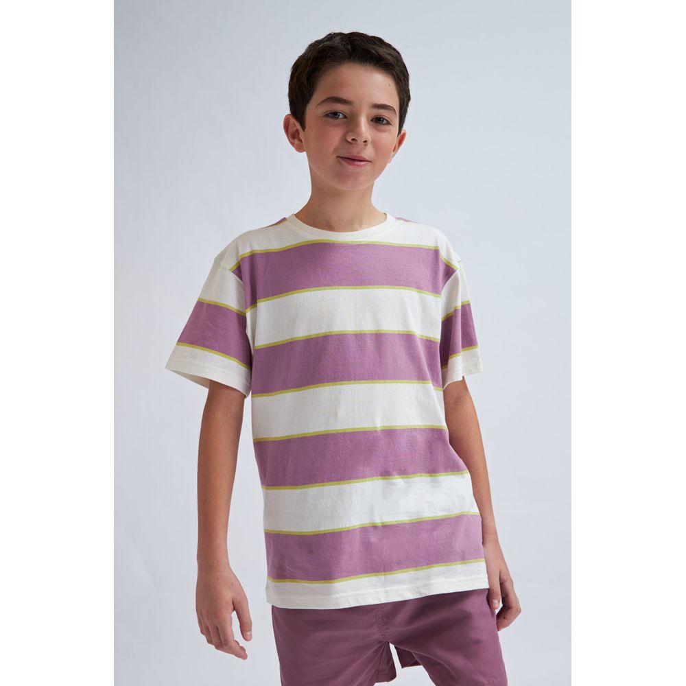 REMERA MANGA CORTA RAYAS ESTAMPA WINTER CRUDO