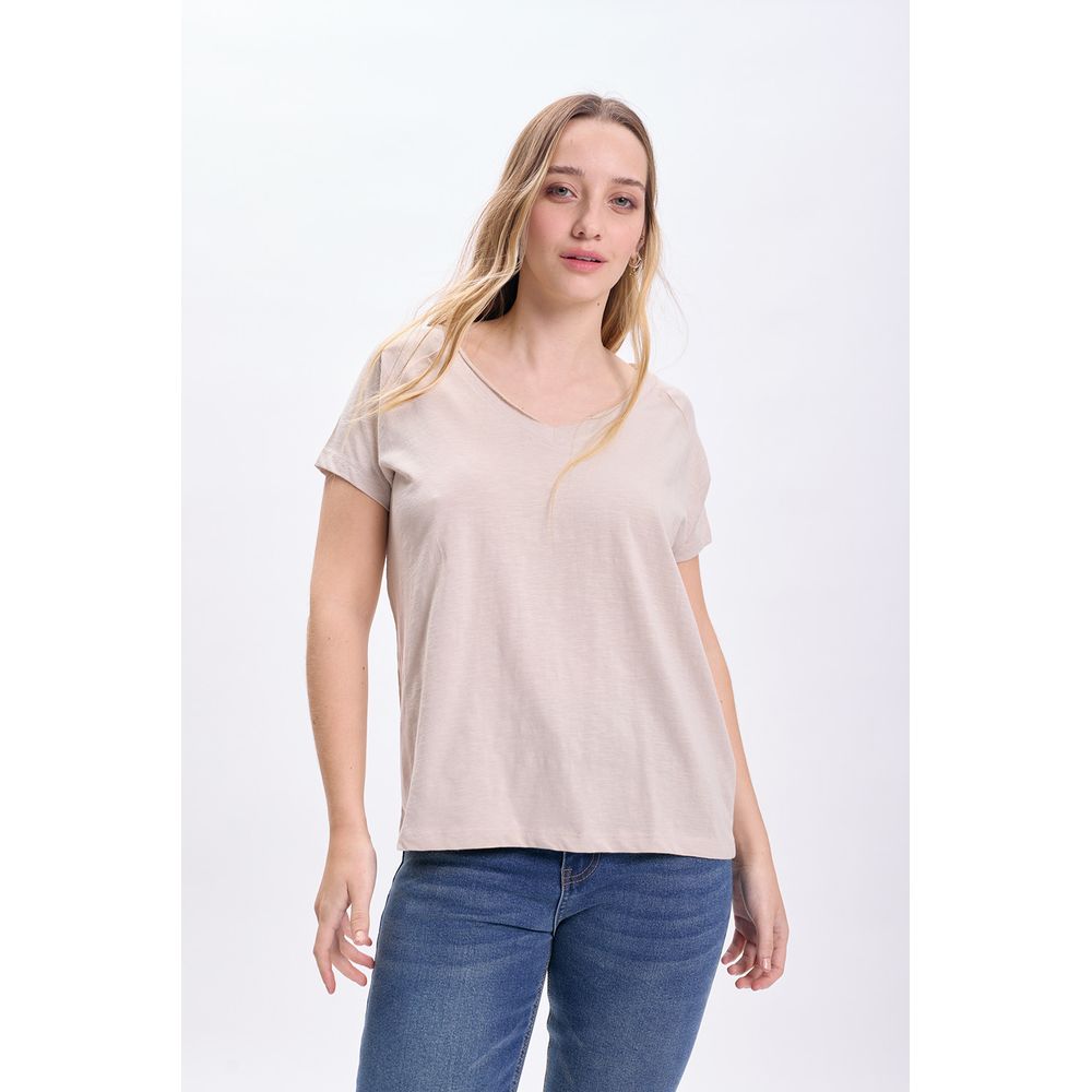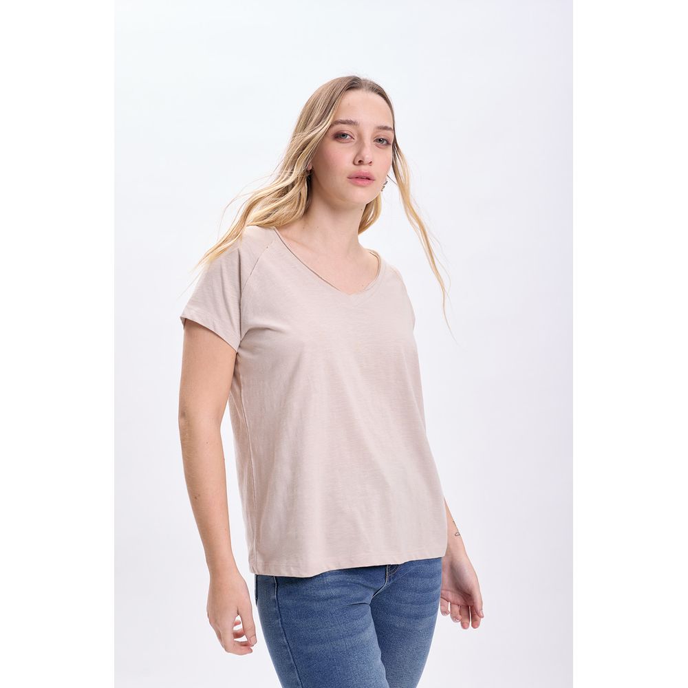 REMERA MANGA CORTA ESCOTE EN V CRUDO