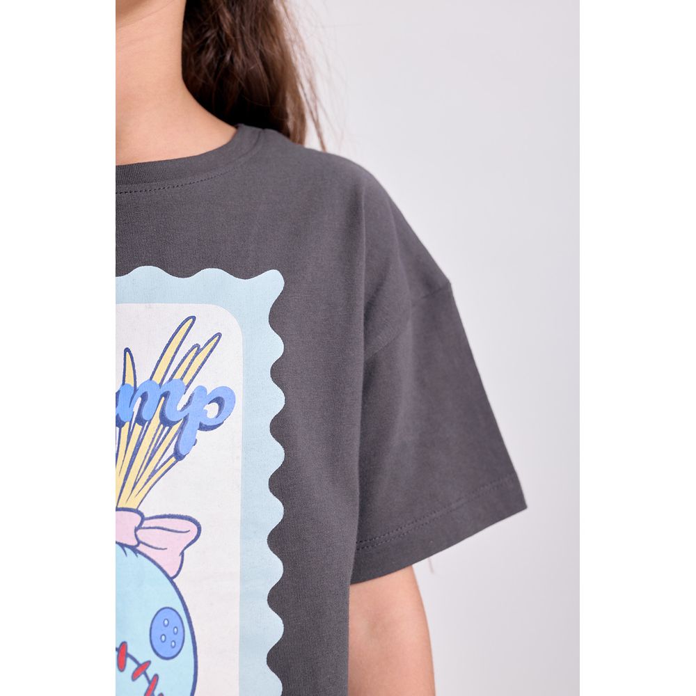 REMERA MANGA CORTA PRINCESAS GRIS OSCURO