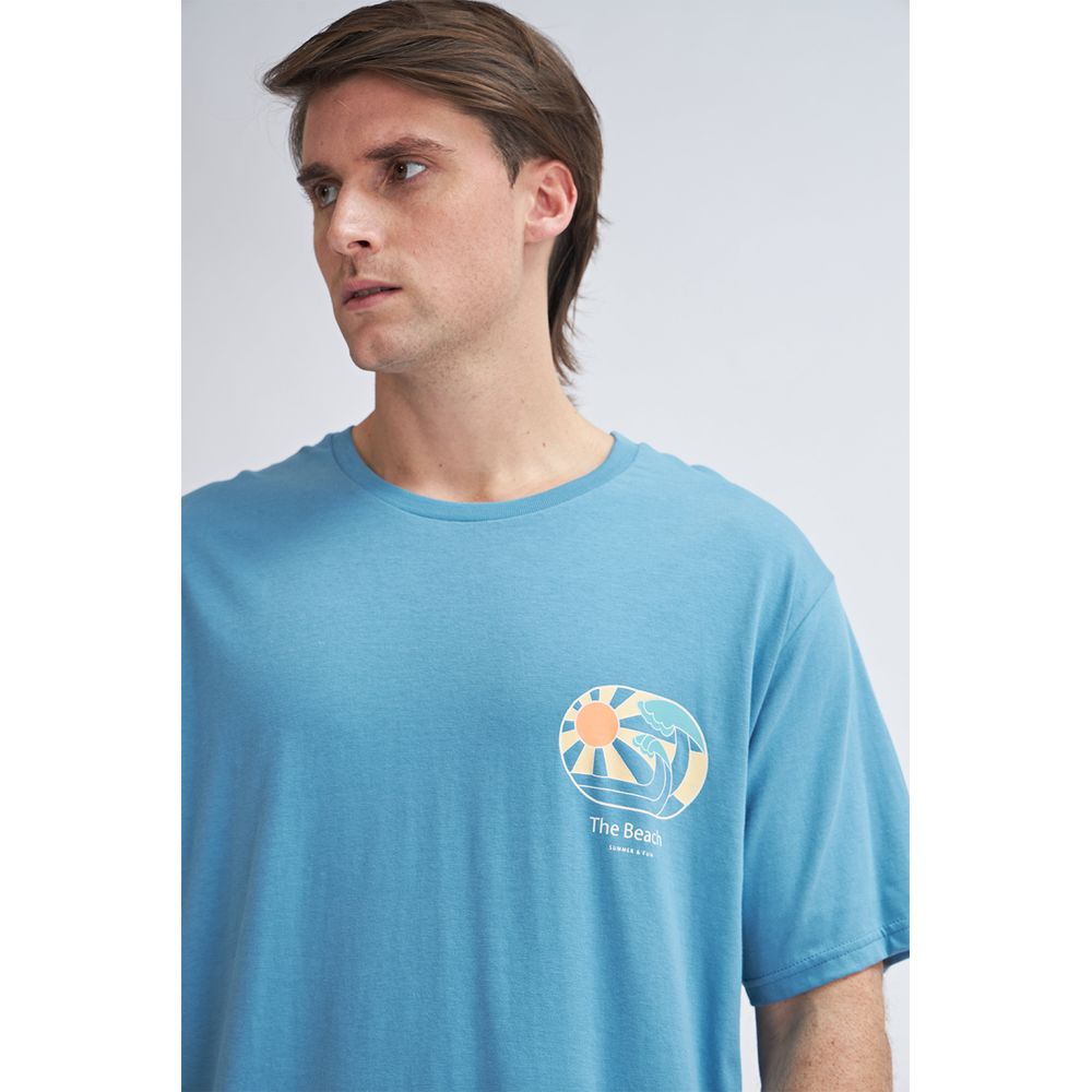 REMERA MANGA CORTA MANGA RANGLAN ESTAMPA CLASSIC AZUL
