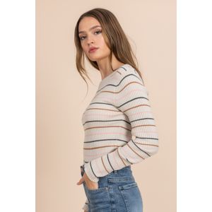REMERA MANGA 3/4 CUELLO ALTO RAYADA ROSA